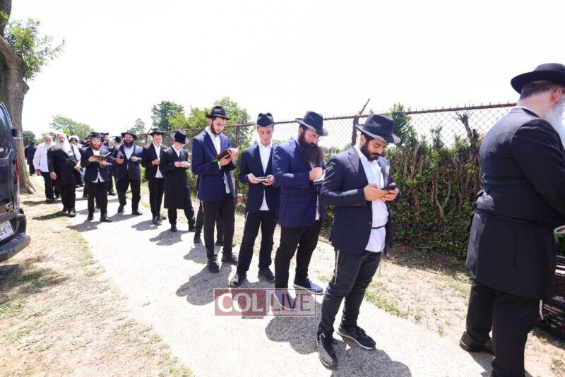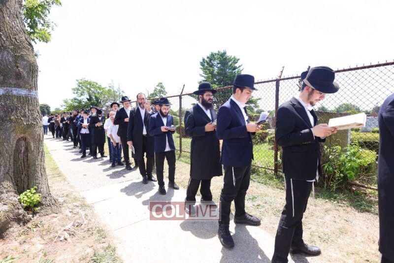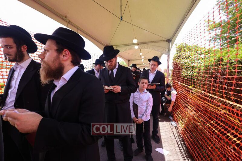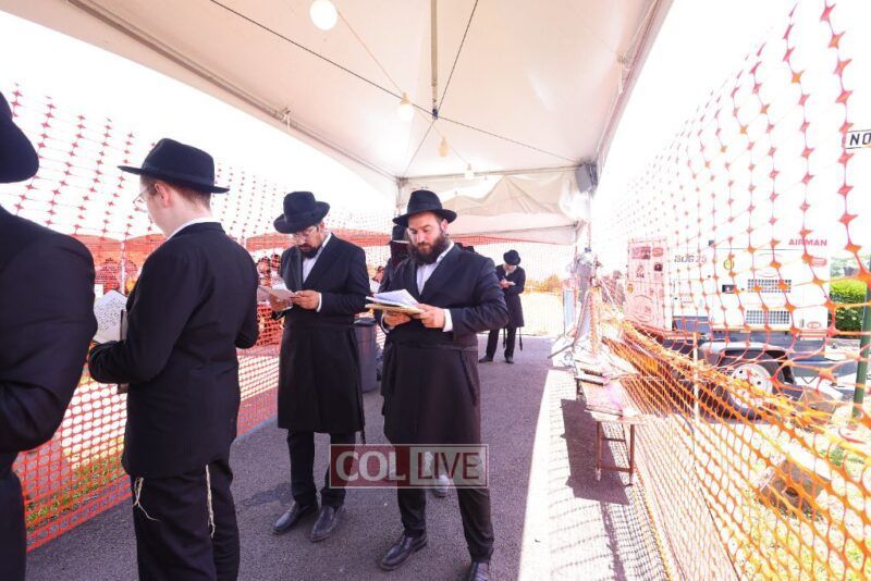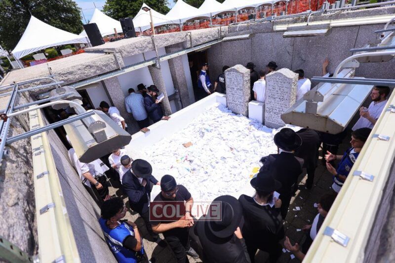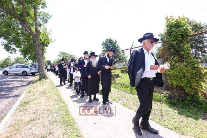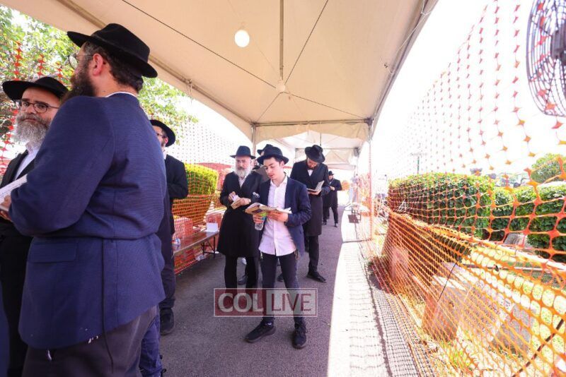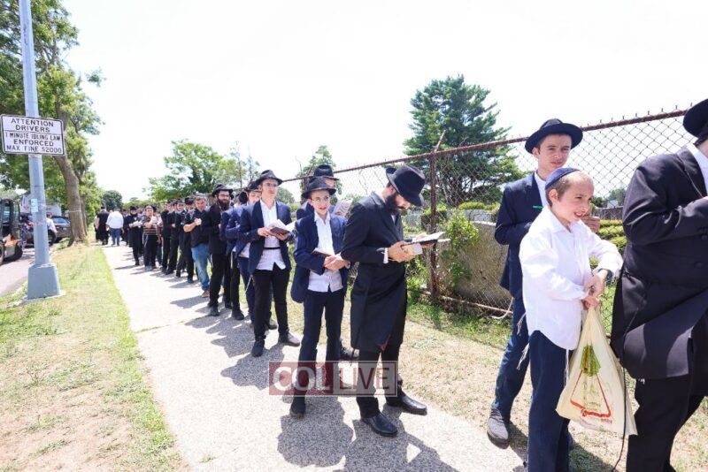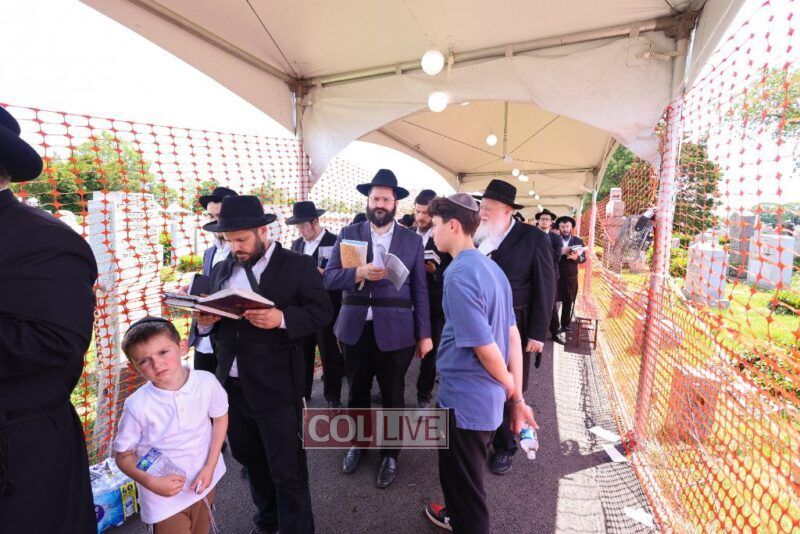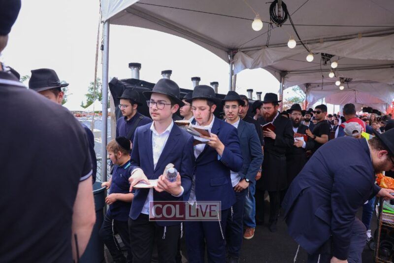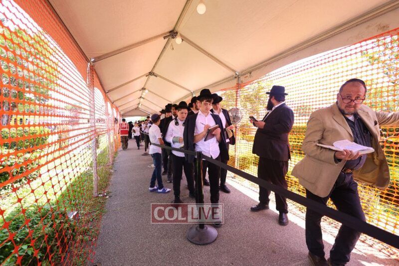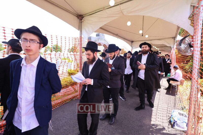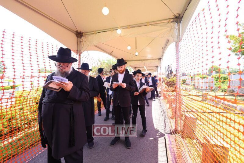 Exiting calmly through the newly constructed northern door of the Ohel building, known as the “Candle Room,” visitors quickly reached stations offering cold and hot beverages, sandwiches, fruits, and snacks to replenish. Many Chassidim fast until they enter the Ohel, and under the sweltering New York Tammuz heat—reaching 100°F—they permitted themselves only water sipped from coolers placed along the extensive line, which during peak hours meant waiting up to three hours.