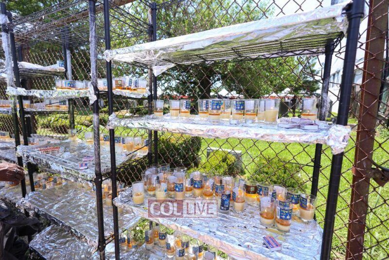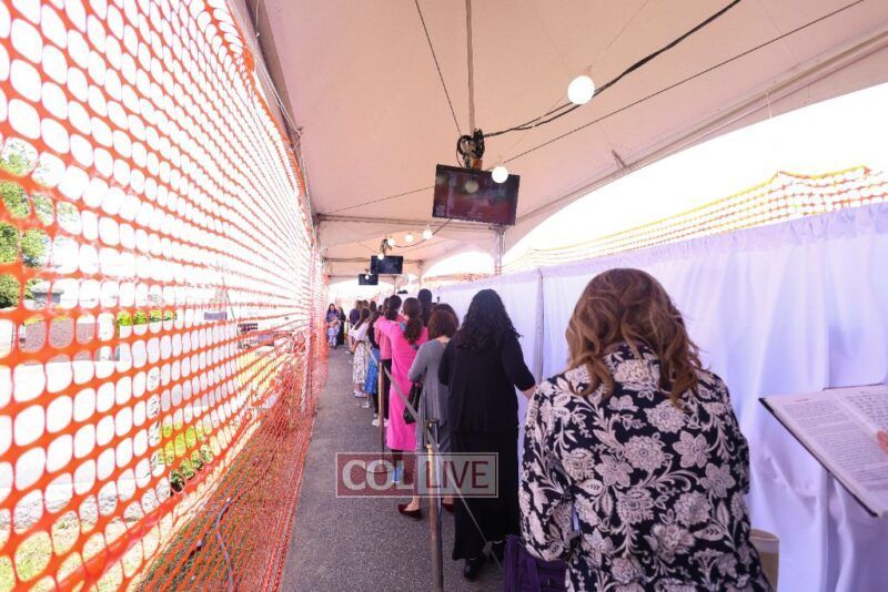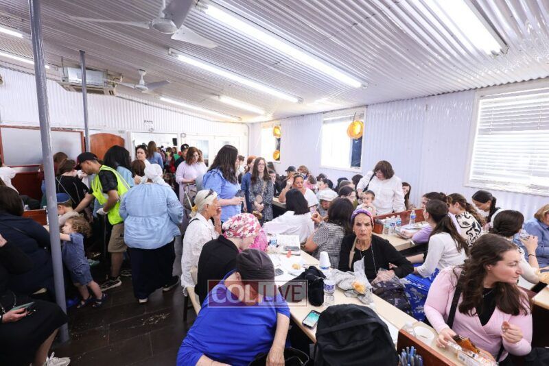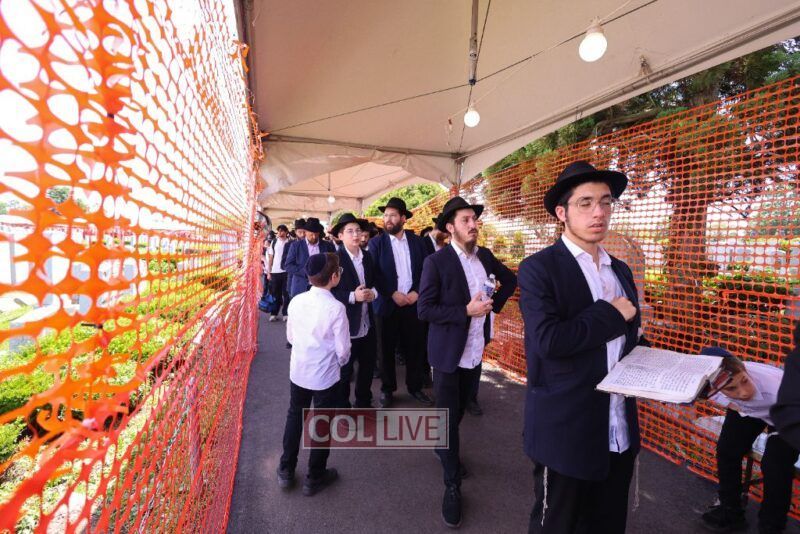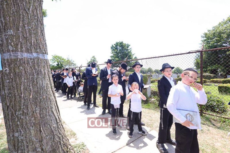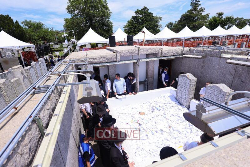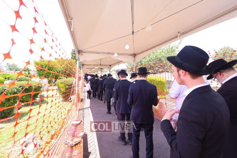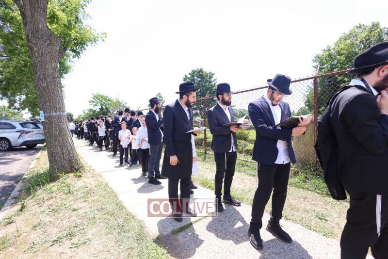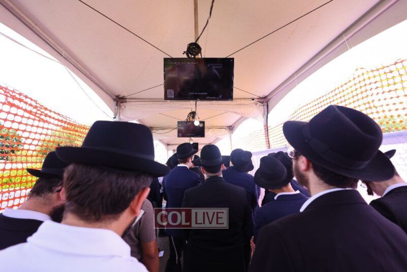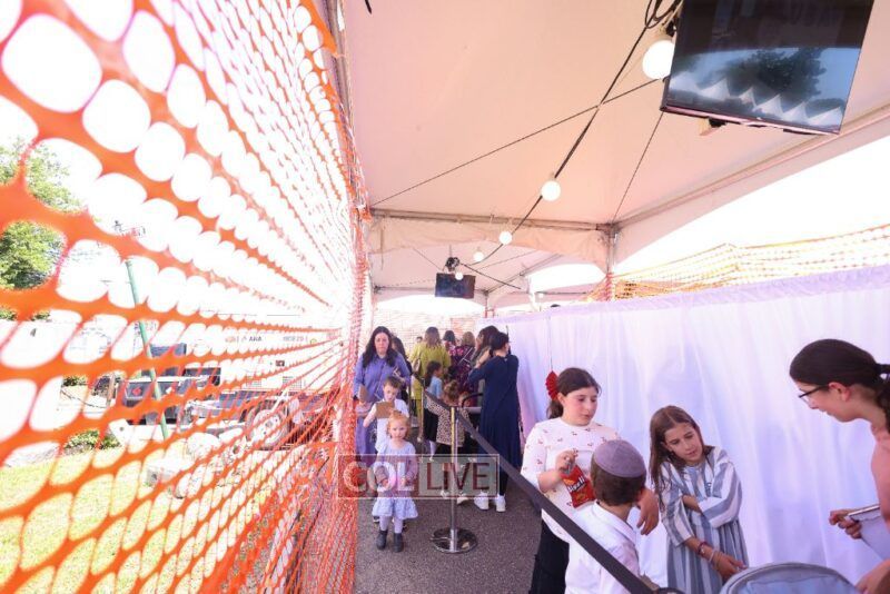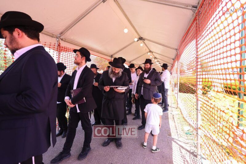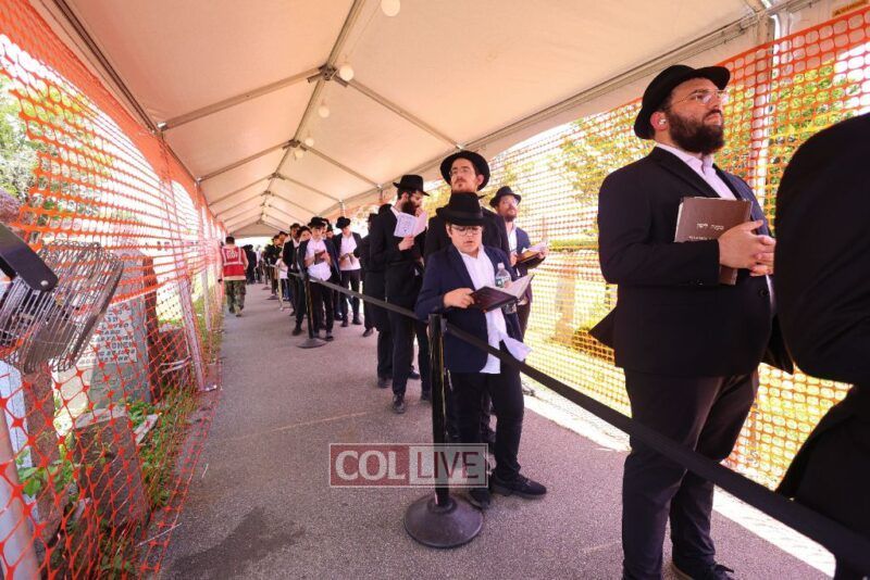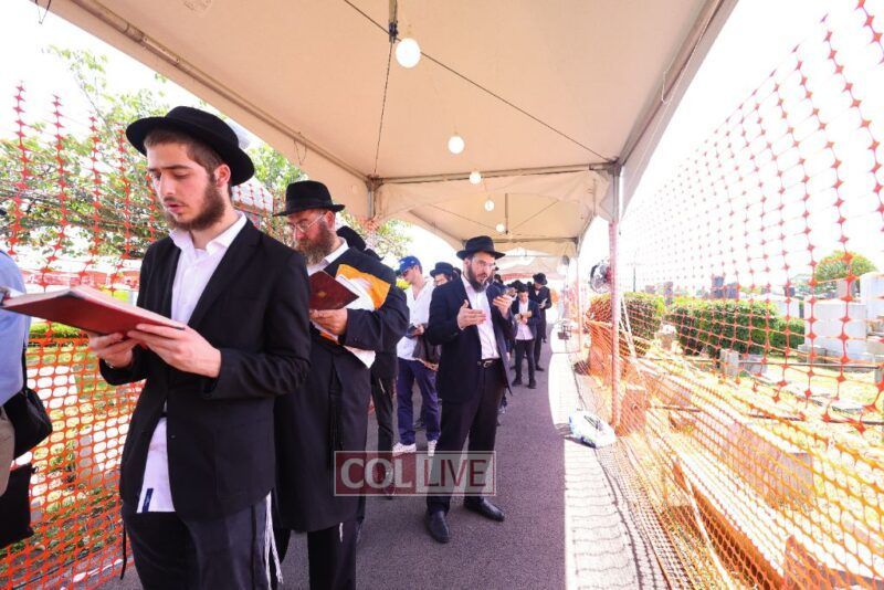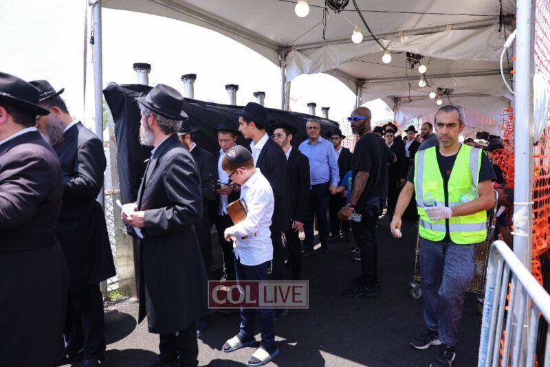 Exiting calmly through the newly constructed northern door of the Ohel building, known as the “Candle Room,” visitors quickly reached stations offering cold and hot beverages, sandwiches, fruits, and snacks to replenish. Many Chassidim fast until they enter the Ohel, and under the sweltering New York Tammuz heat—reaching 100°F—they permitted themselves only water sipped from coolers placed along the extensive line, which during peak hours meant waiting up to three hours.