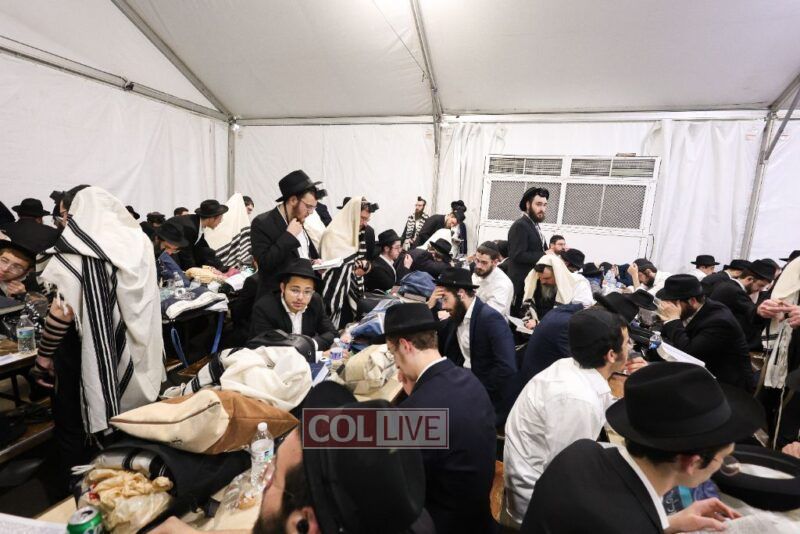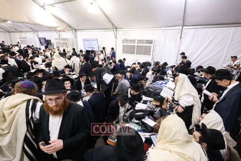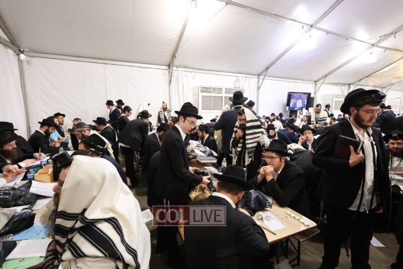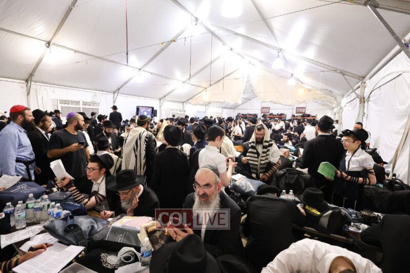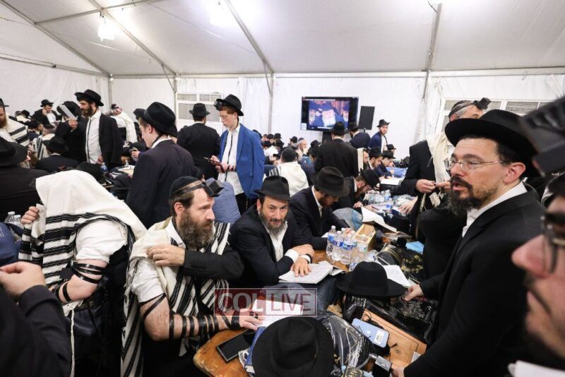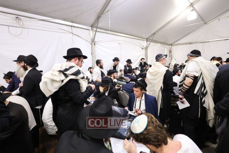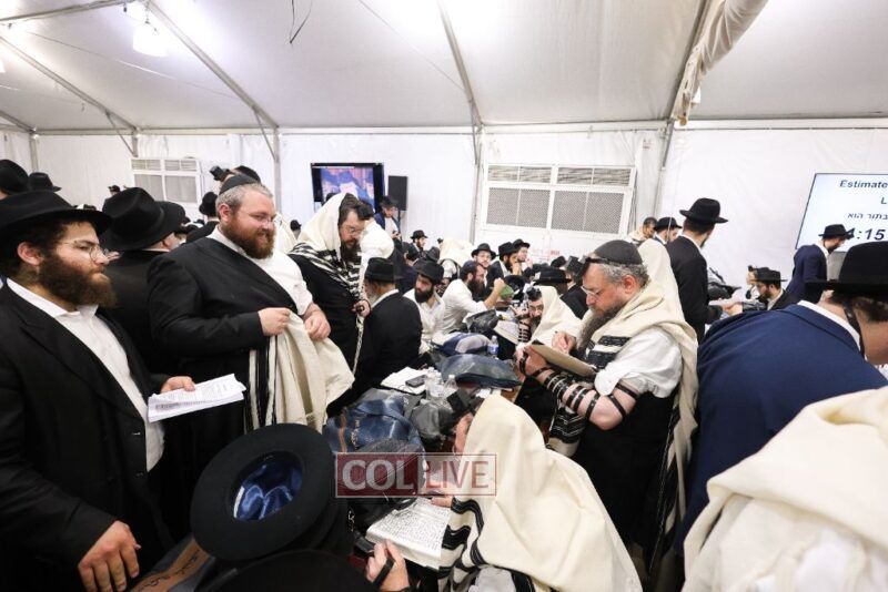 After immersing in nearby Mikvaos, they joined one of the many minyanim taking place in the five massive, air-conditioned tents, where excerpts of the Rebbe’s Maamar “Ve’Atah Tetzaveh” were recited by heart, as is customary.
