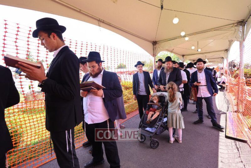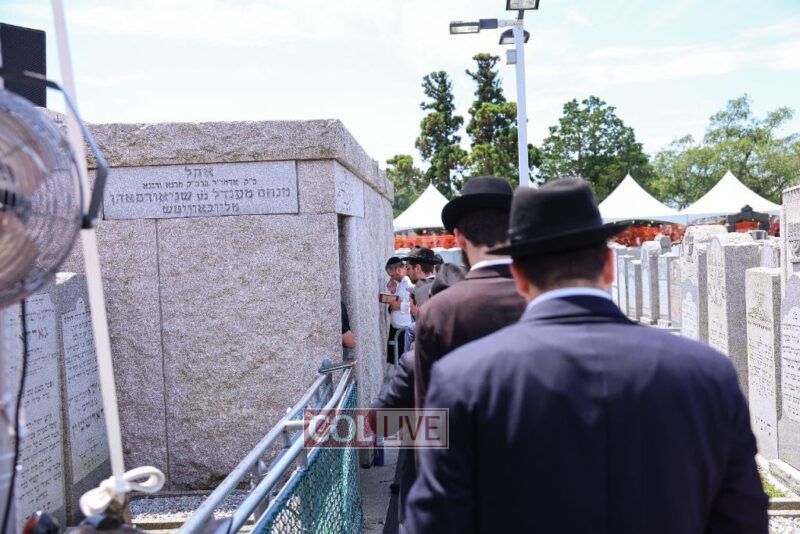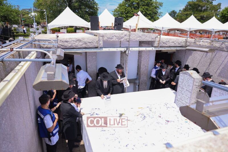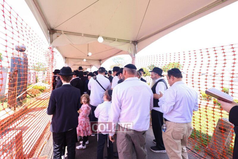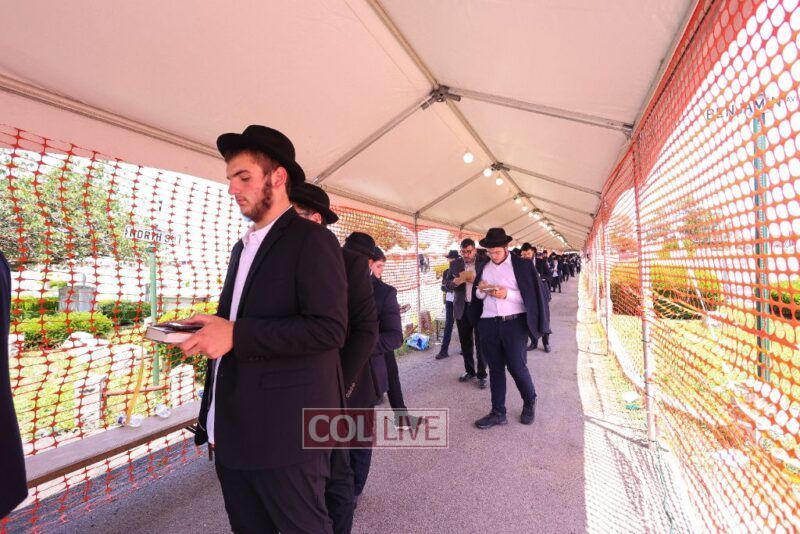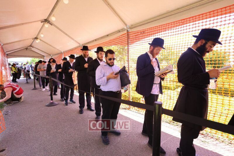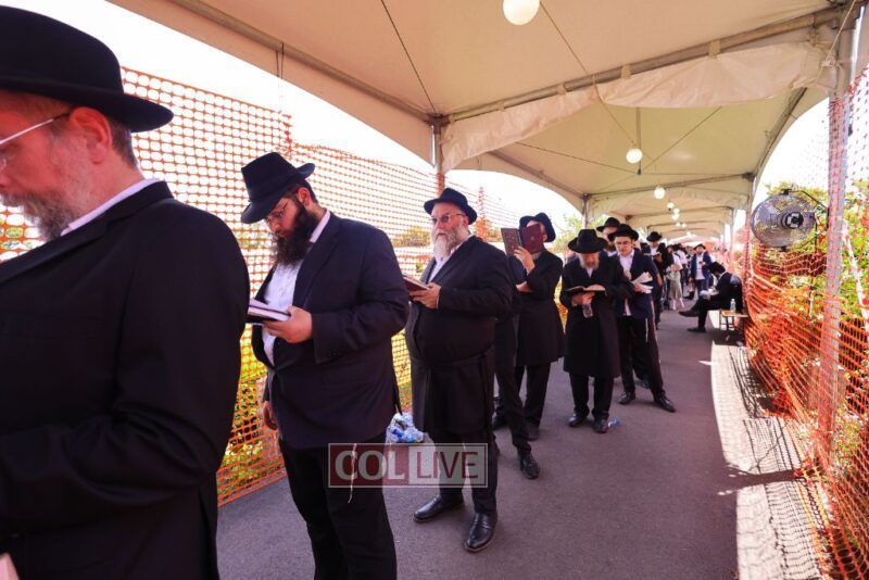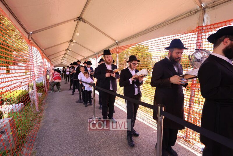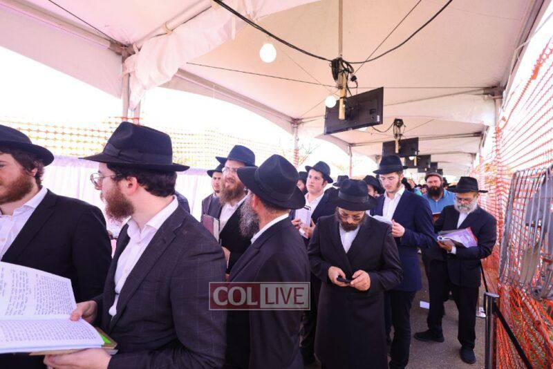 The line to enter the Ohel, stretching in perfect order for hundreds of meters, included Yidden of all backgrounds and affiliations. With humility and reverence, they passed the time studying specially prepared learning booklets, watching footage of the Rebbe, or reciting chapters of Maaneh Lashon and Tehillim, as is customary on this day.