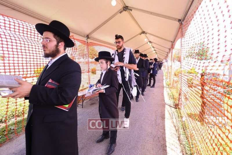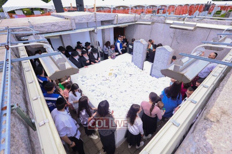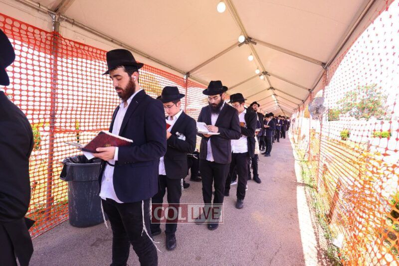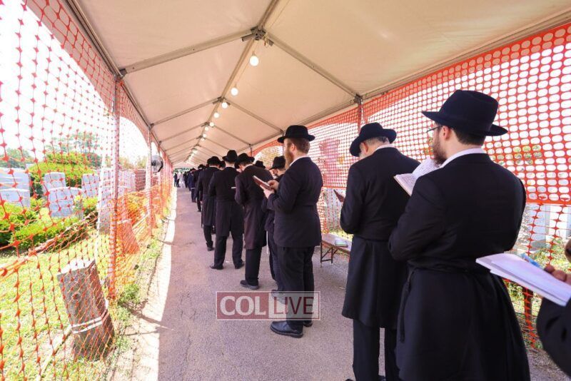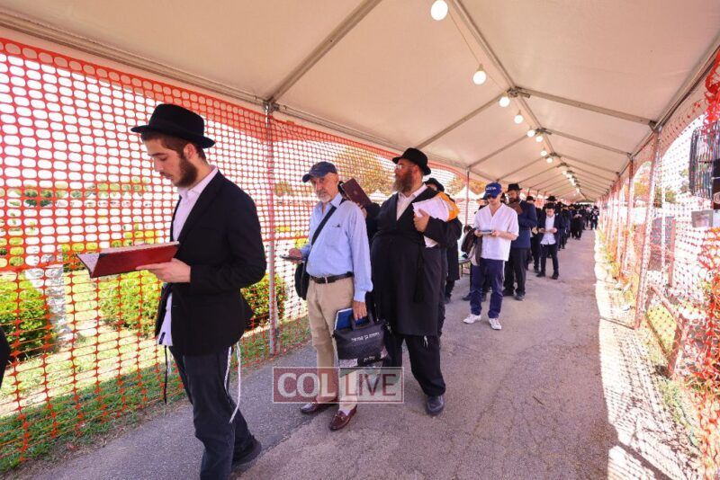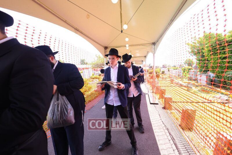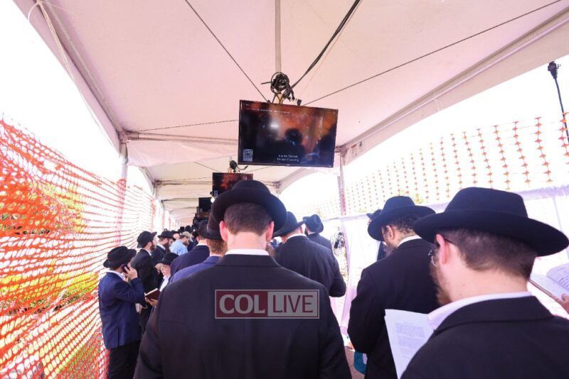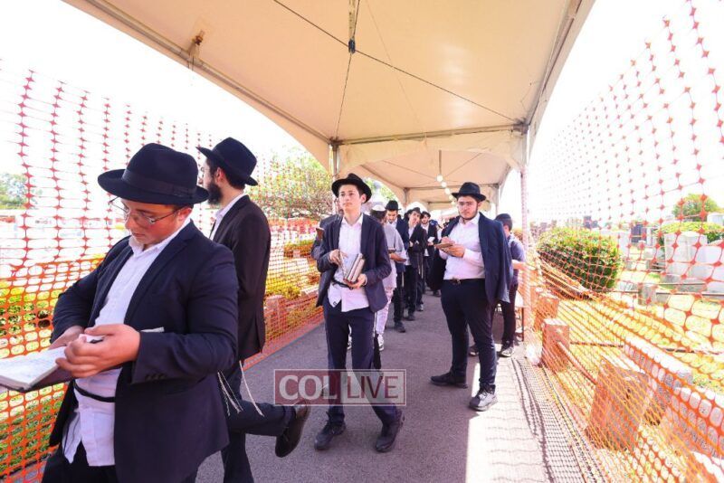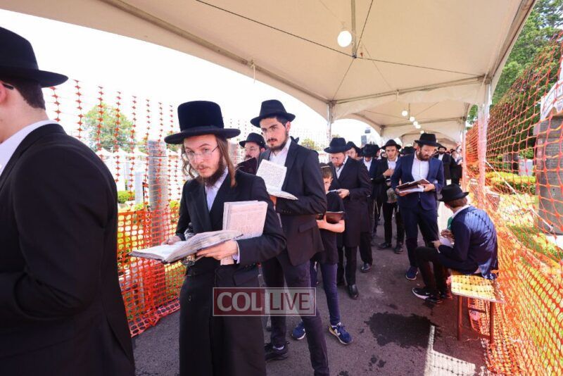 The line to enter the Ohel, stretching in perfect order for hundreds of meters, included Yidden of all backgrounds and affiliations. With humility and reverence, they passed the time studying specially prepared learning booklets, watching footage of the Rebbe, or reciting chapters of Maaneh Lashon and Tehillim, as is customary on this day.