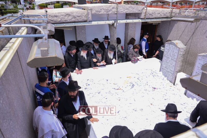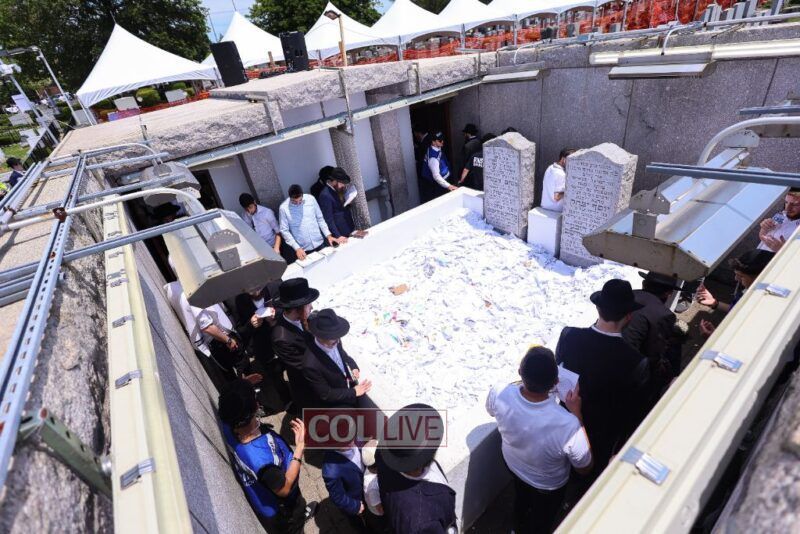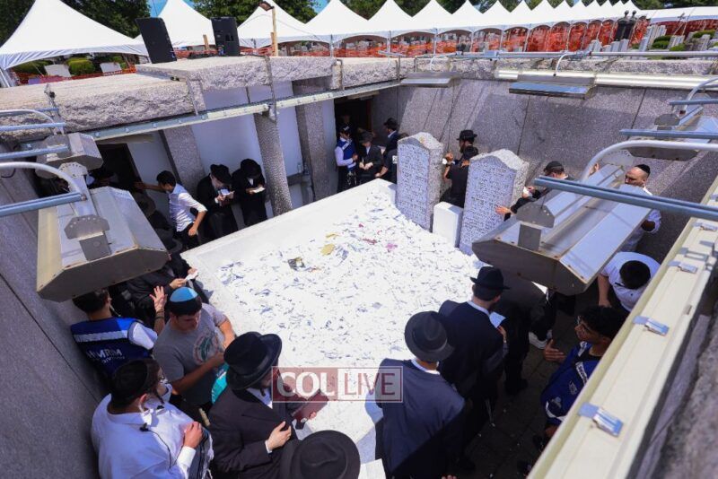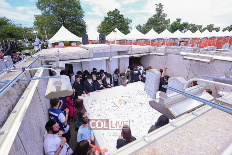 In awe and trepidation, the Panim—as the Rebbe would do when visiting the resting place of his father-in-law, the Frierdiker Rebbe—were torn and respectfully placed on the Rebbe’s holy resting place.