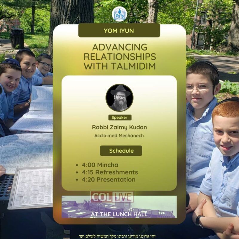 A special ‘Yom Iyun’ was scheduled for Mechanchim in YTTL Queens Mesivta and Cheder Ohr Menachem.