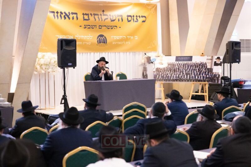 More than 450 Shluchim and community members gathered yesterday in Paris for the 27th Kinus Hashluchim, held in the Chaya Mushka hall.