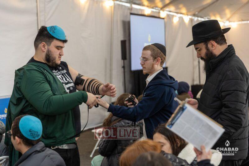 Shluchim and students alike were enthusiastic about the new format. “We come with a relatively large group every year,” said Rabbi Mendel Matusof, who together with his wife Henya co-directs Chabad at the University of Wisconsin in Madison, WI. “There are always logistical challenges with an overall group numbering in the thousands. For example, we usually gather together in Crown Heights to prepare for the trip to the Ohel, as there simply isn’t enough room there to bring so many people together. But this time, we were all able to congregate in the tent and prepare for the Ohel, and that certainly maximized the experience for everyone.”