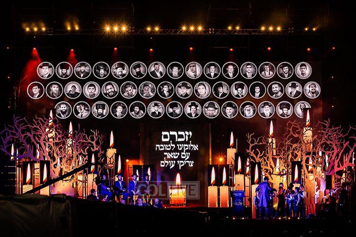 This photo was taken on the first yartzeit of the 45 Jews who were crushed to death at Meron on Lag BaOmer, a ceremony was held on Mount Meron in their memory. The event ended with an emotional singing of Ani Maamin with a special screen displaying the memory of all those who perished.