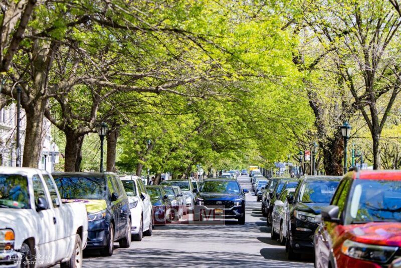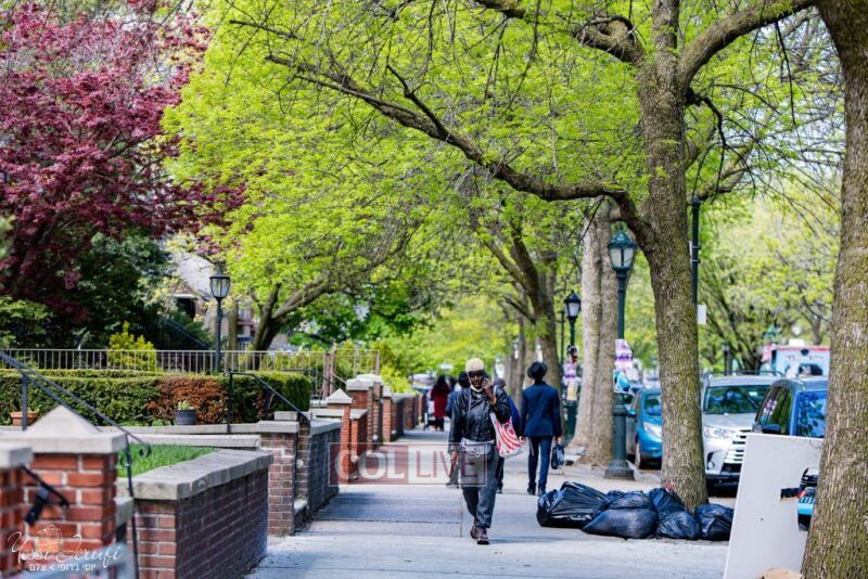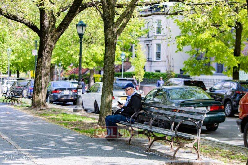 Trees and plants starting to bloom are adding pops of color to the Crown Heights neighborhood's streets and parks. Residents are seen enjoying the beautiful outdoors of the springtime season. Photos
