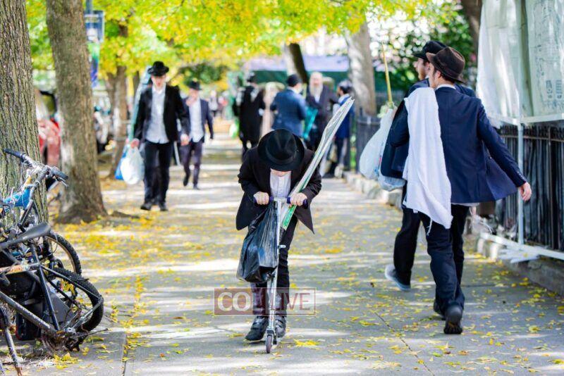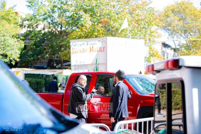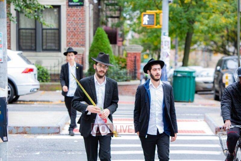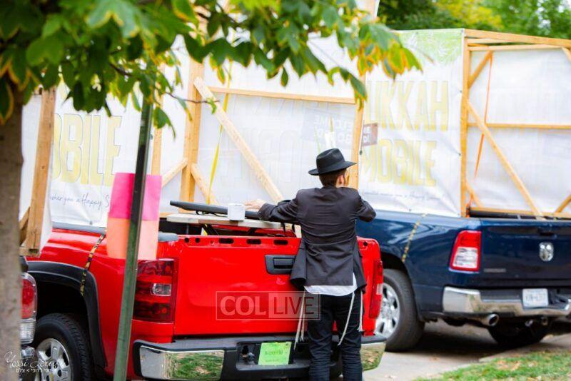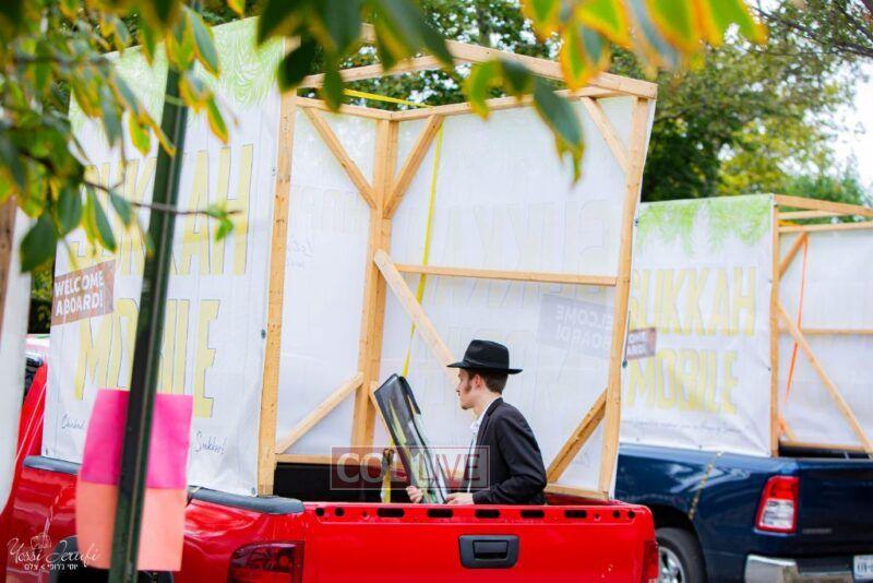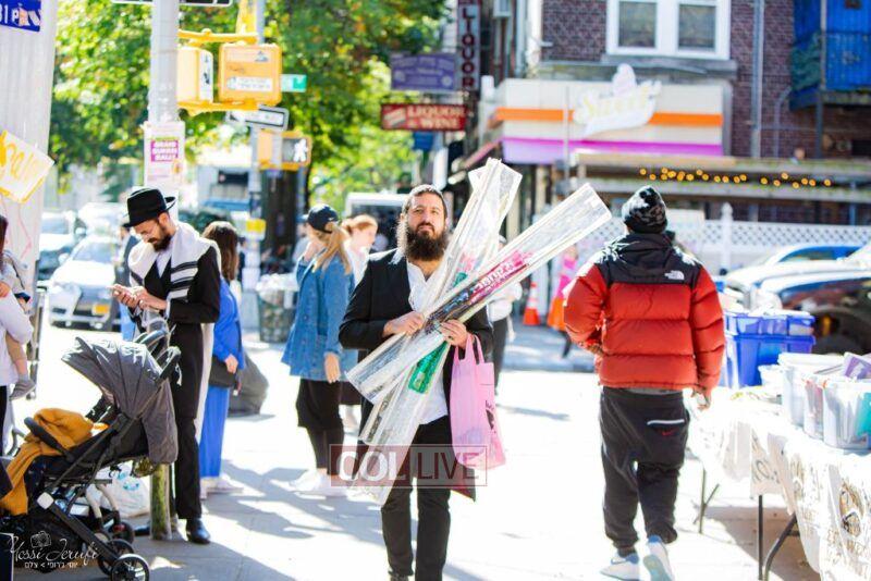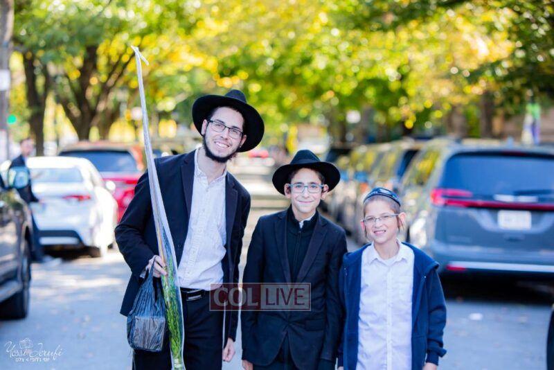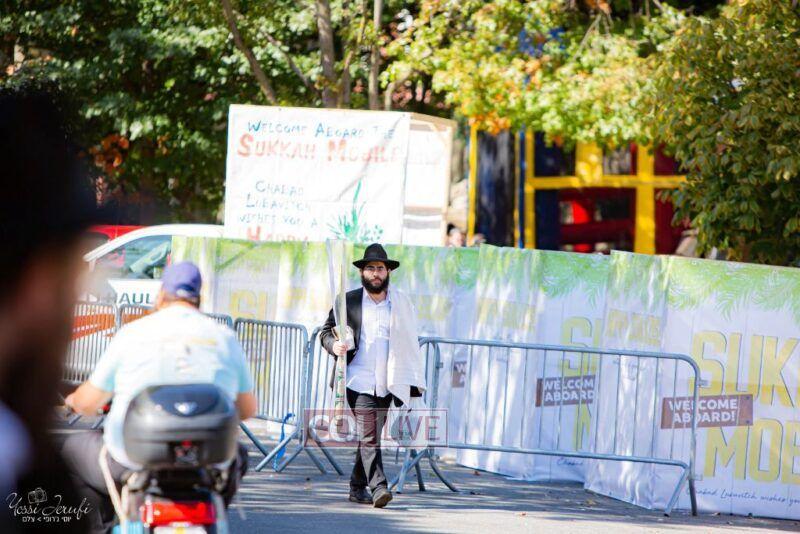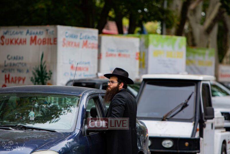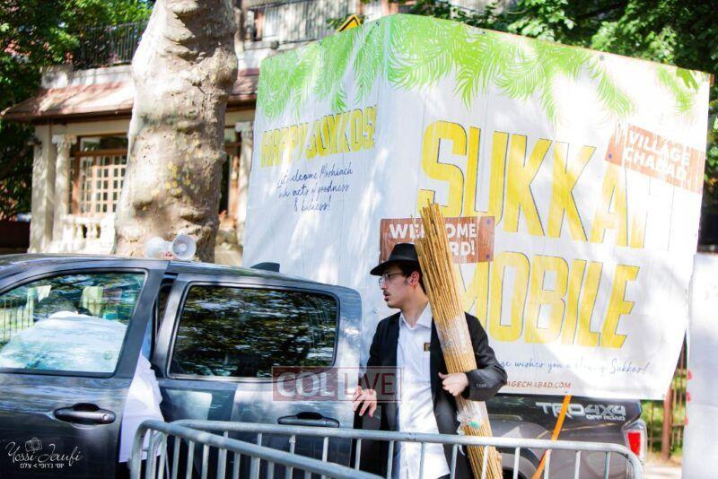 Bochurim could be seen heading out armed with Lulav and Esrog by train and Sukkah mobile to offer fellow Jews the opportunity to perform the Mitzvos of Sukkos. Photos