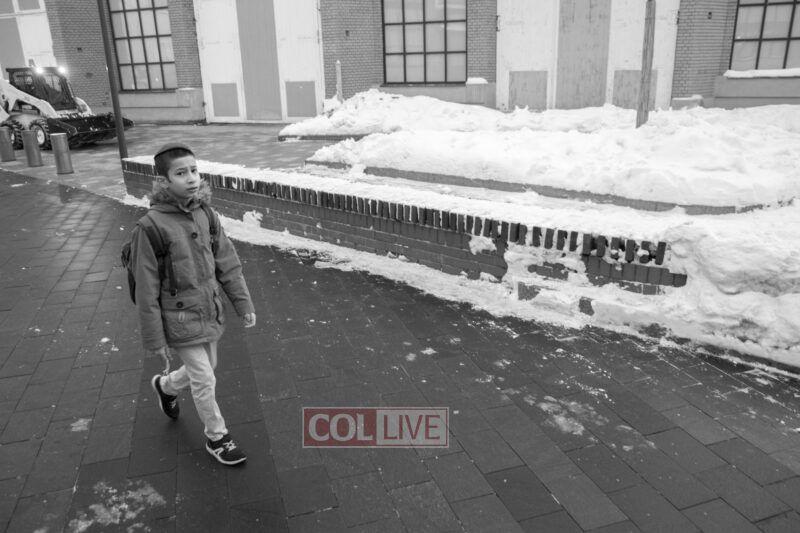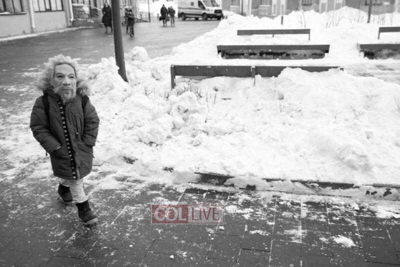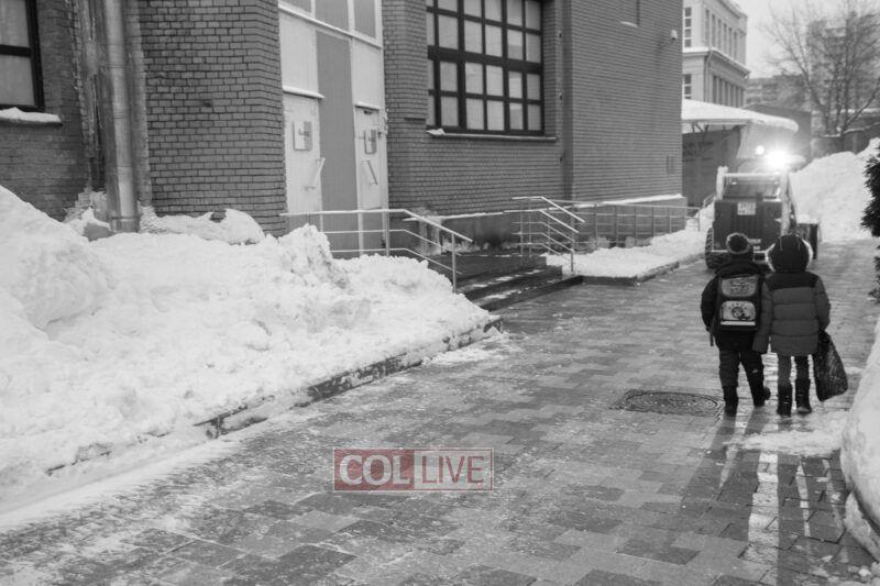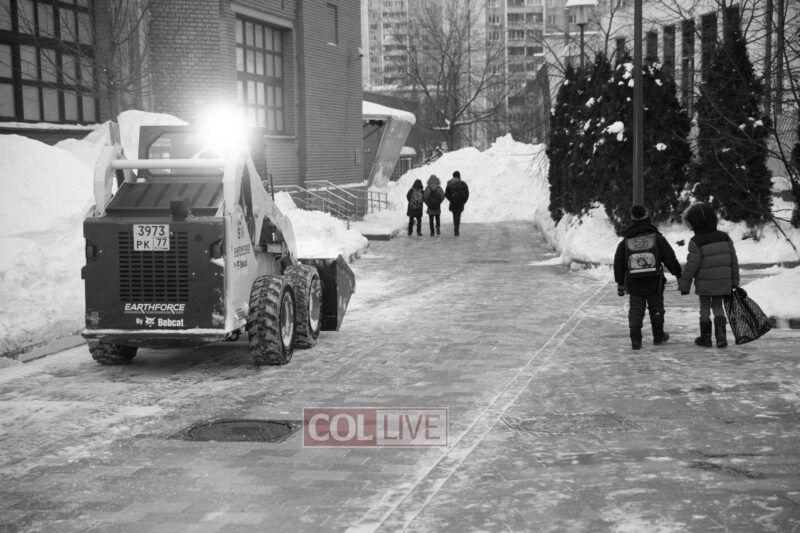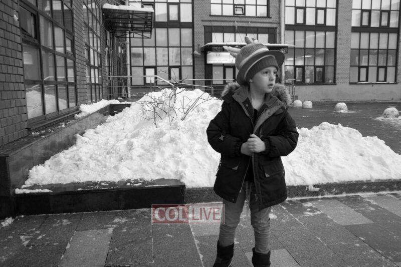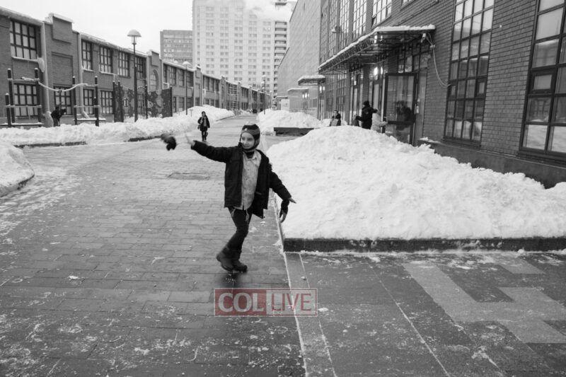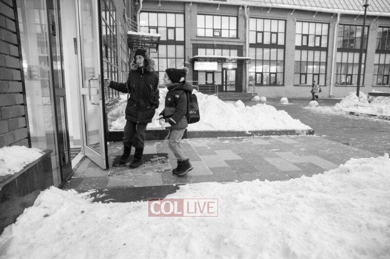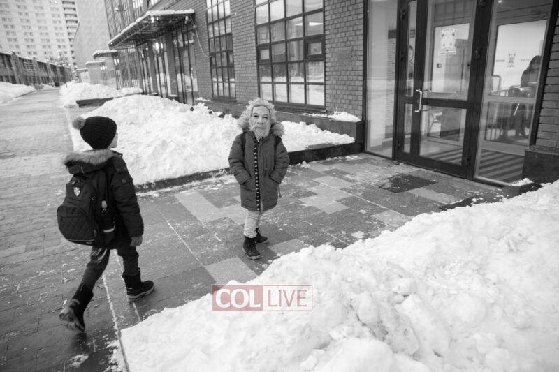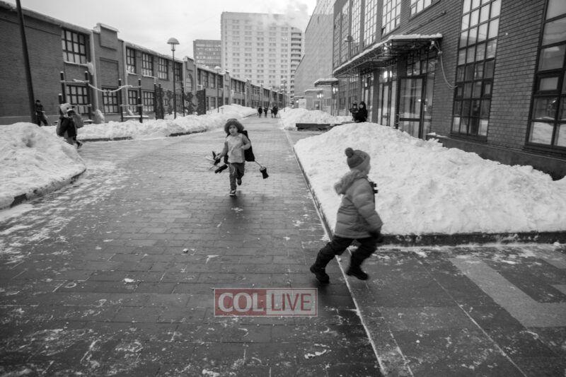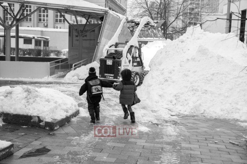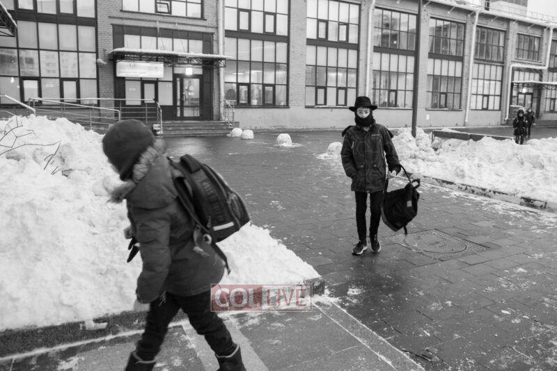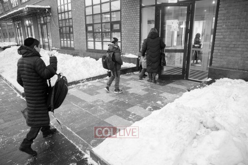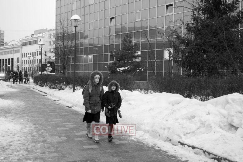 Alexei Kunin is a talented photographer residing in Moscow. His black and white photography exhibits are of international fame. This week, he arrived at the Marina Roscha neighborhood in the early morning hours to photograph Jewish children walking to their schools, after snowmobiles had cleaned the territory all night.