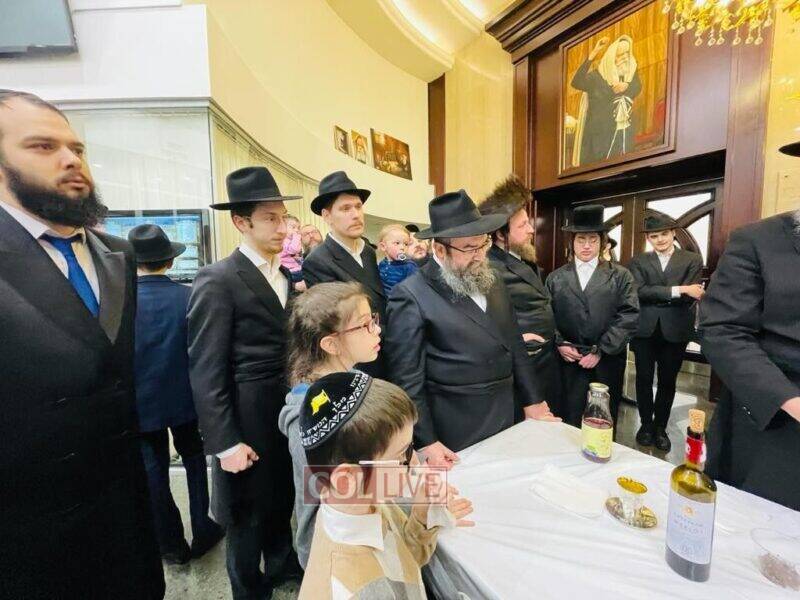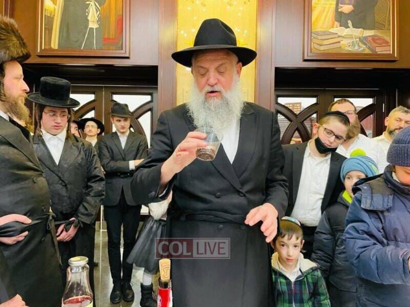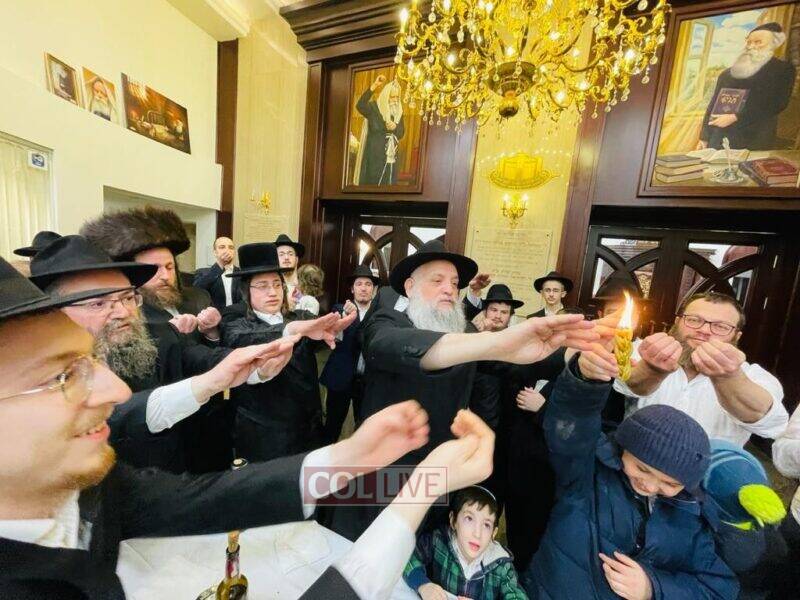Rabbi Dov Gruzman, Chabad Shliach in Vienna, Austria, recites havdalah at the Kiryas Rabeinu Hazaken near the Alter Rebbe's Ohel in Hadiatch, Ukraine, on Motzoei Shabbos. His family held a Shabbos Sheva Brachos there. More