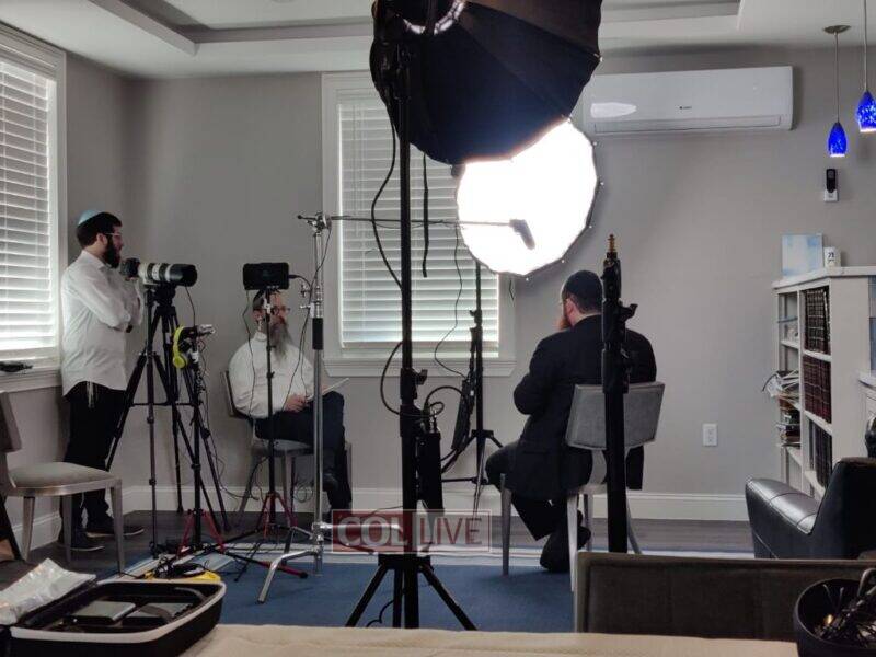 Rabbi Elkanah Shmotkin, director of Jewish Educational Media, interviewing Detroit Mashpia Rabbi Mendel Sharf for an upcoming presentation in honor of Gimmel Tammuz. More