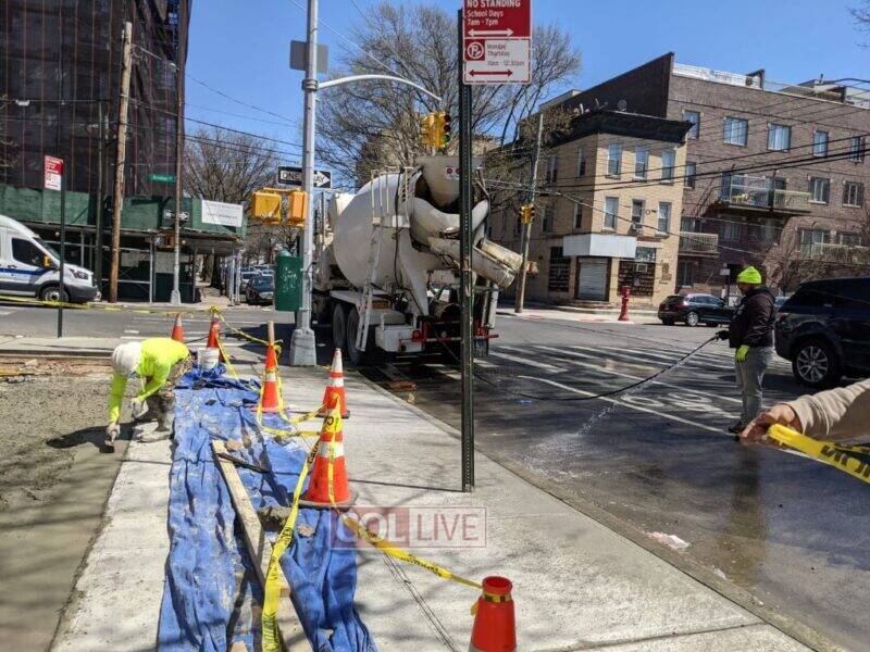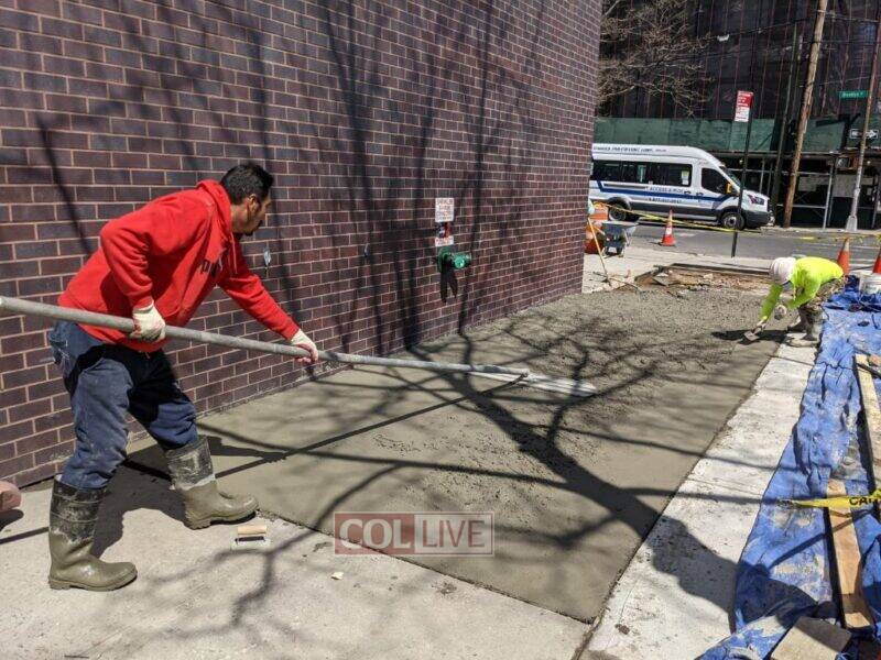 The sidewalk surrounding the Bais Rivkah building on Lefferts Avenue in Crown Heights was repaired today to enhance the safety of the area for students. Photos, Video