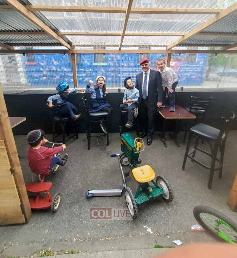 Curtis Sliwa, running to become the Republican nominee for mayor of New York City, poses with Crown Heights children at Rita's of Lincoln Place in Brooklyn on Friday. Photo