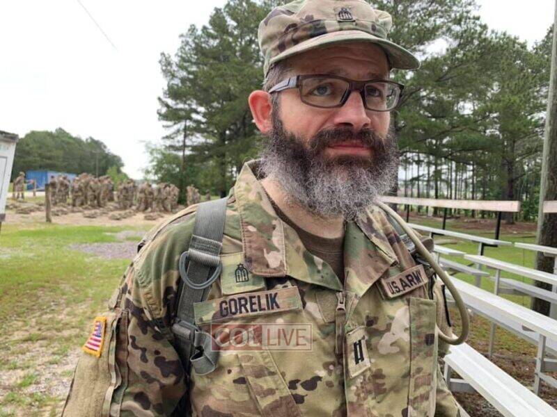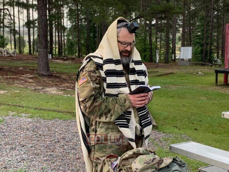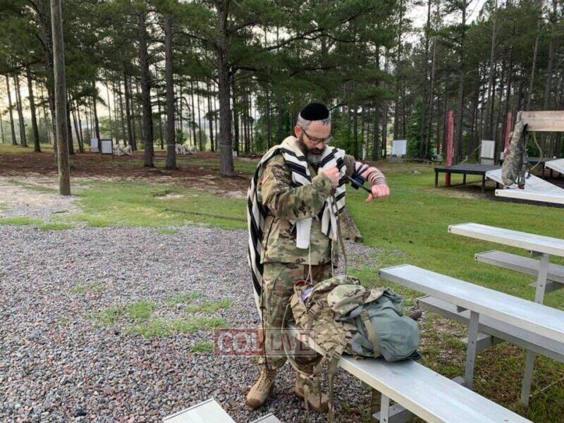 "For G-d and country": Chabad Rabbi Yerachmiel Gorelik davens Shachris before participating in Teamwork Development Course activities at U.S. Army Chaplain Center and School in Fort Jackson, South Carolina, Monday. Full Story