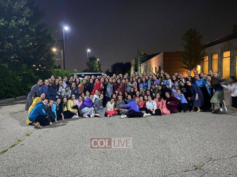 122 girls from CGI Detroit Teen Camp pose for a picture before a “runaway” to 7-eleven to get Slurpees as a reward for finishing the entire Tehilim on Shabbos Mevorchim Elul. Photo