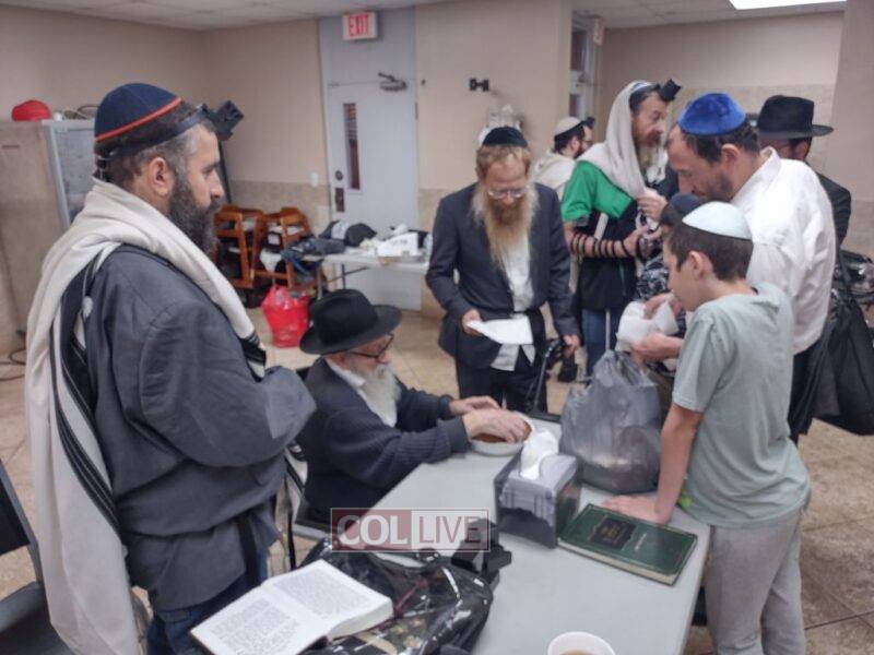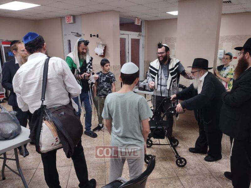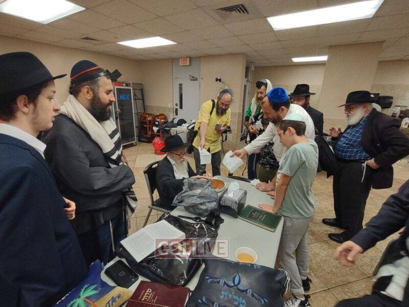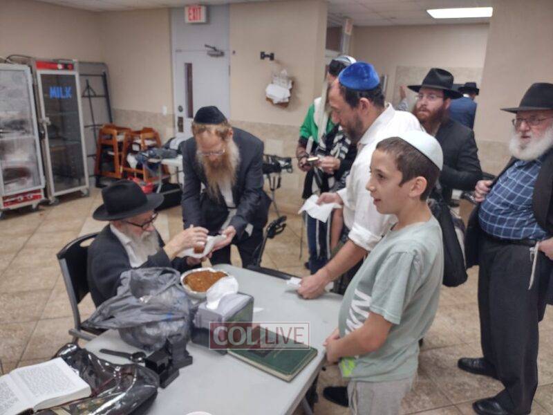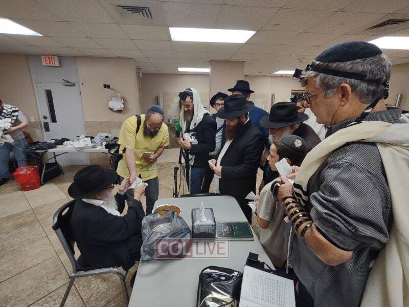 Rabbi Avrohom Korf, Head Shliach to the state of Florida for 61 years, distributes lekach to the Miami community on Erev Yom Kippur. More