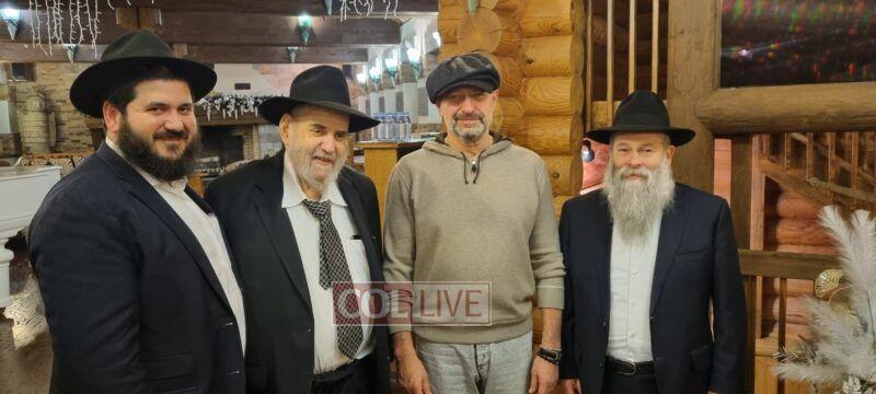 Rabbi Moshe Kotlarsky, Vice Chairman of Merkos, Rabbi Mendy Kotlarsky, Director of Merkos Suite 302, and Dnipro Head Shliach Rabbi Shmuel Kaminetzky celebrate the 60th birthday of philanthropist Gennady Bogolubov in Ukraine. They thanked his support of Chabad causes around the world. More
