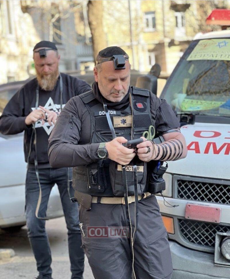 Lieutenant Dr. Zev Neuwirth, currently in Ukraine helping the Jewish refugees fleeing the country, takes a break to daven Shacharis. Photo