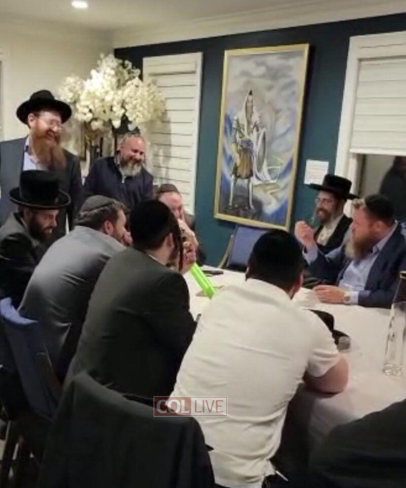 Shliach Rabbi Levi Raices, who escaped from the bombarded Ukrainian city of Kharkiv, gave an update about the war at a farbrengen in the home of Eli and Shterni Steinmetz in Pomona, NY, on Thursday. More