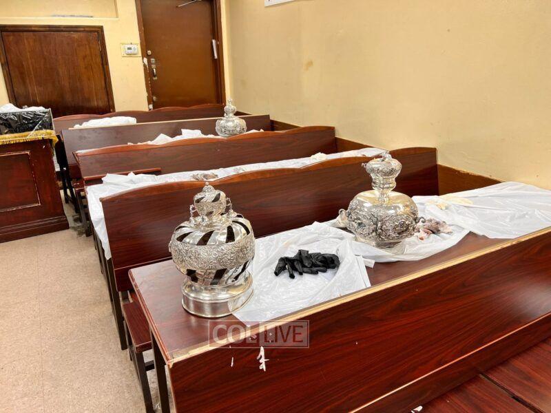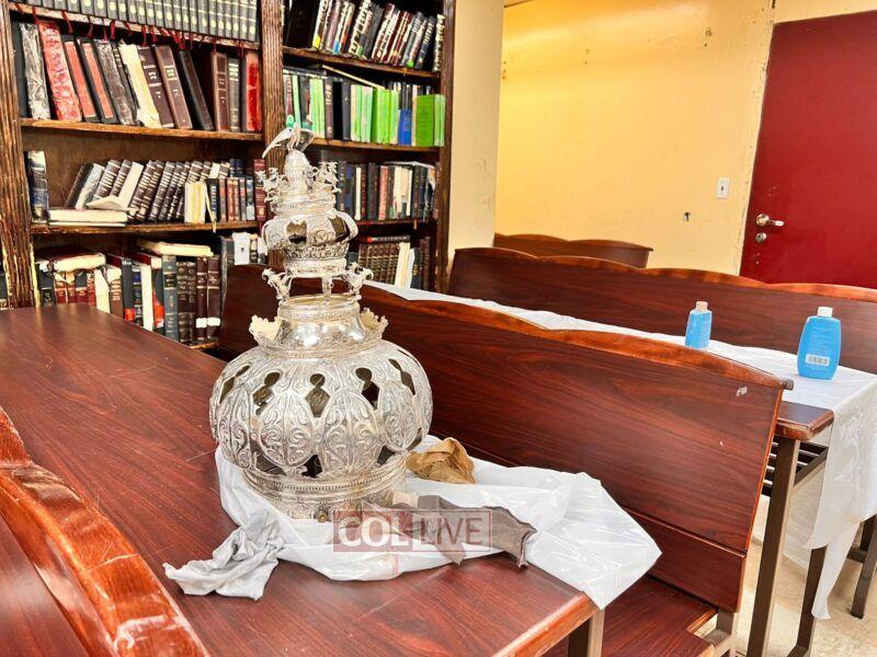 The silver crowns of the Sifrei Torah of the Shul at 770 Eastern Parkway were carefully cleaned on Thursday by a group of girls from Bais Rivkah school. Photos