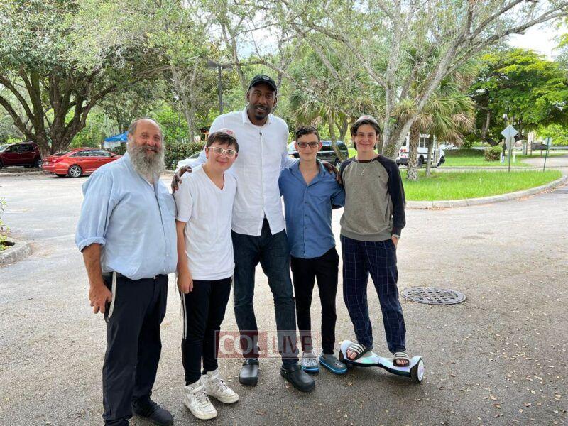 Basketball player Amare Stoudemire visited Rabbi Pinny and the students of TAG on the Chabad SWB Campus in Cooper City, Florida today. More