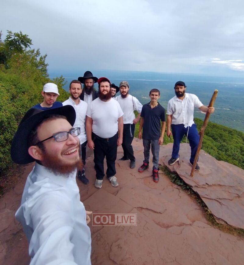 Bochurim from Hadar Hatorah Yeshiva who spent the summer in the Catskills in upstate New York, met a Jewish family while on a hike. After telling stories from the Chumash to their children during the hike up the mountain, Sholom Nebenzhal offered to help the father put on Tefillin right at the peak. More