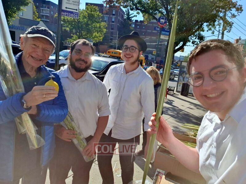 Former U.S. Senator Joe Lieberman shopped for Lulav and Esrog at Riverdale Judaica in New York and was helped by R' Mendel Wilhelm and bochurim Ezer Goldman and Ari Raskin on Thursday. More