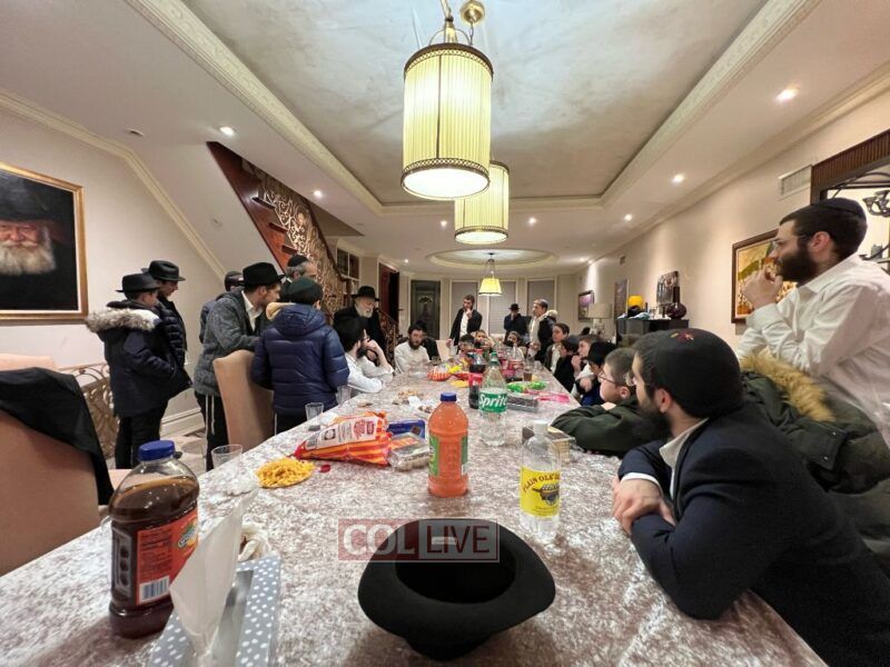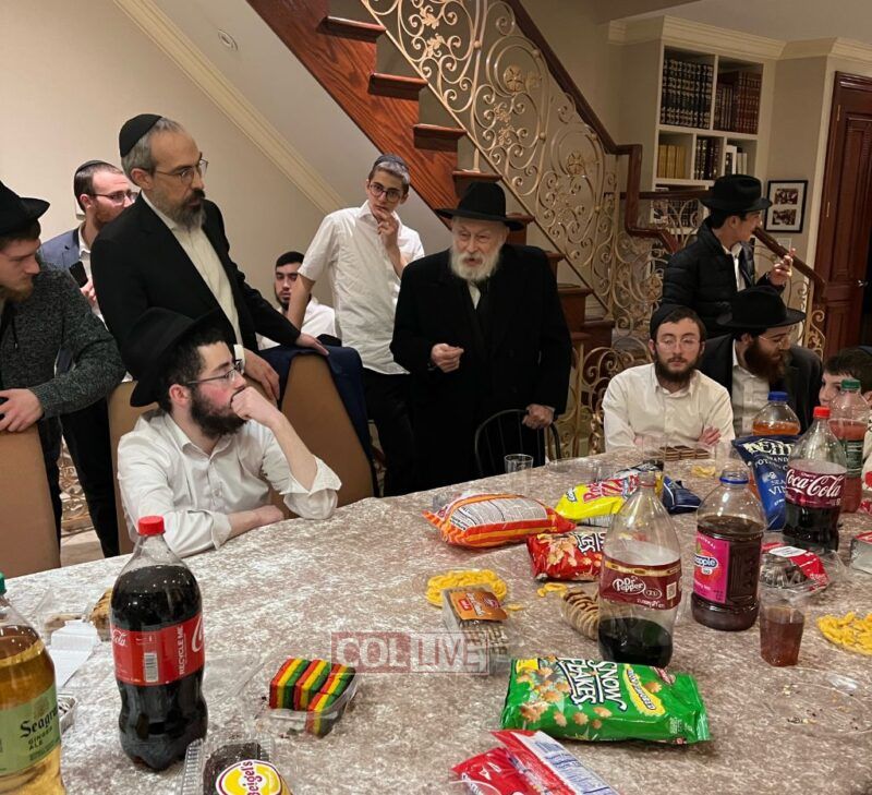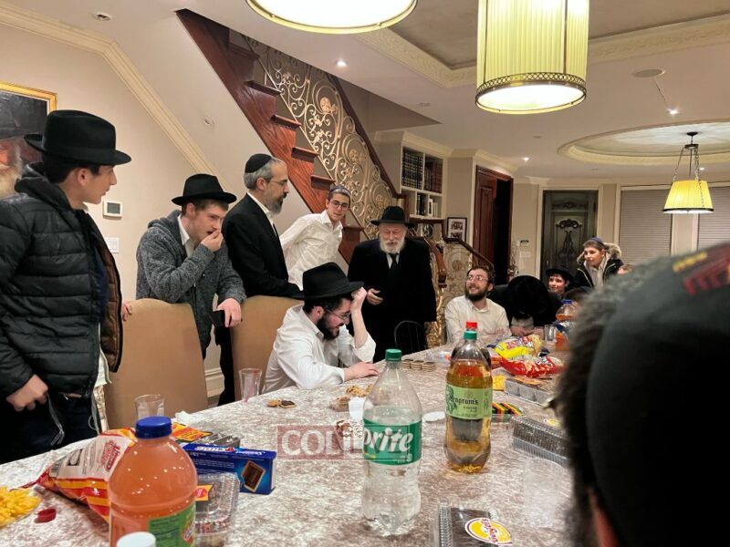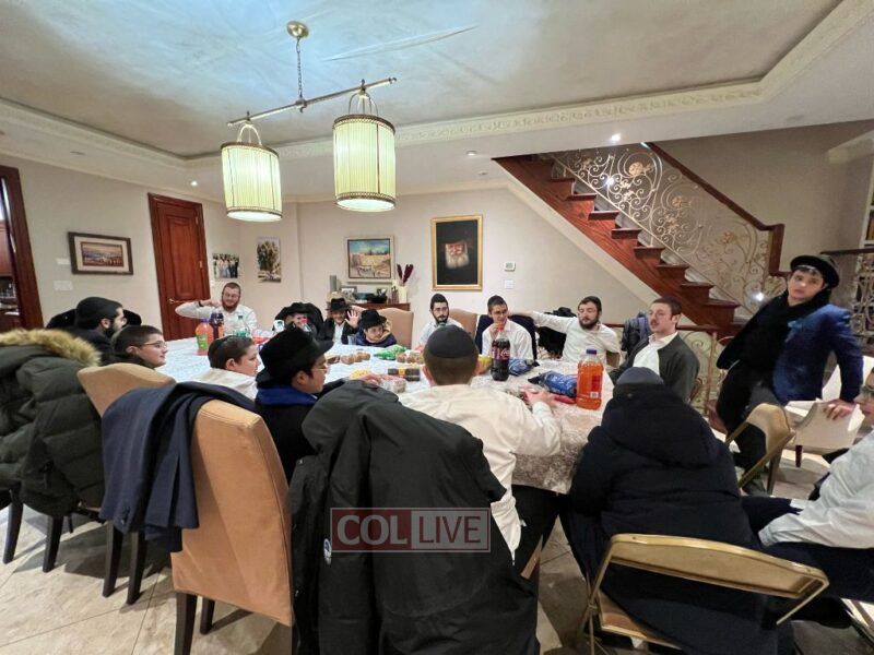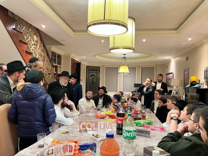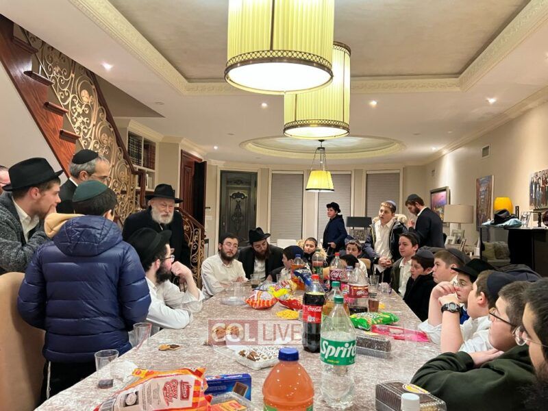 The Rebbe's Mazkir Rabbi Yehuda Krinsky addressed the Lubavitcher Yeshiva 7th-grade students at a Yud Tes Kislev gathering at the Krinsky home in Crown Heights. Photos