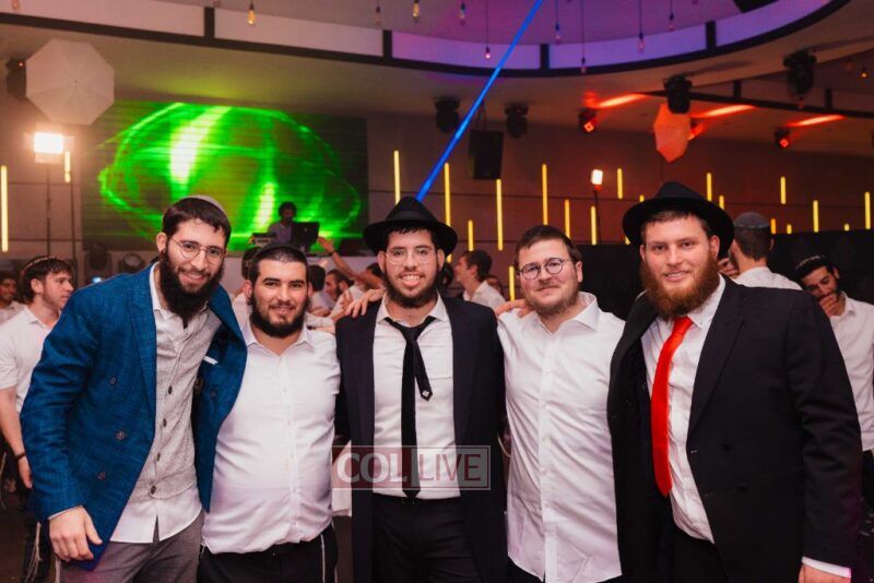 Behind the camera pose: Photographers Sholem Srugo, Levi Amit, Shalom Burkis and Shmuel Amit, who have all worked for COLlive, wish Mazel Tov to their colleague Menush Amit on his wedding in Lod, Israel on Wednesday. Photo