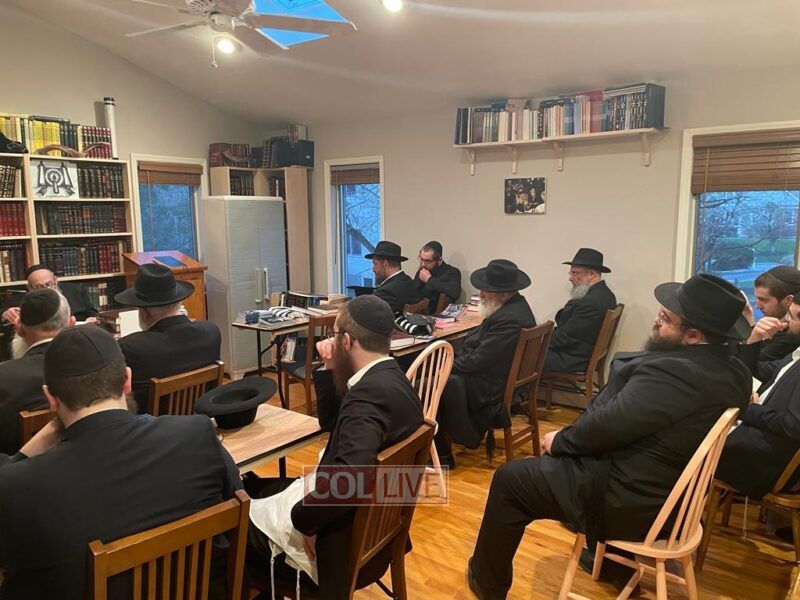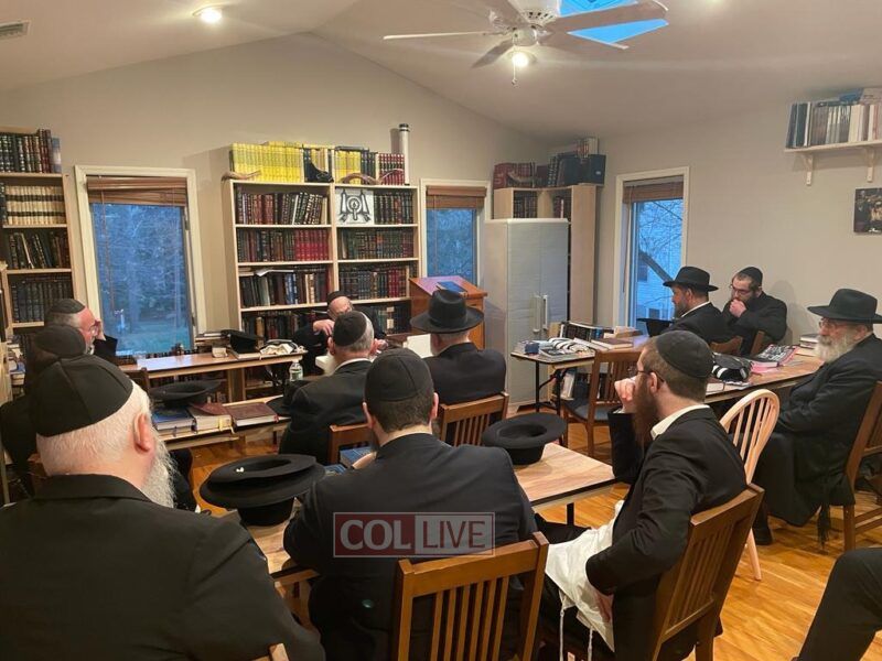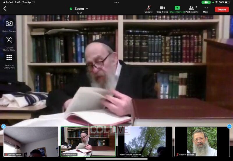 Rabbi Ezra Schochet, Rosh Yeshivas Ohr Elchanan Chabad in Los Angeles, presents a Pesach shiur at the home of his son in law, Rabbi Nachman Wilhelm, Dean of Online Semicha in Suffern, NY. Photos