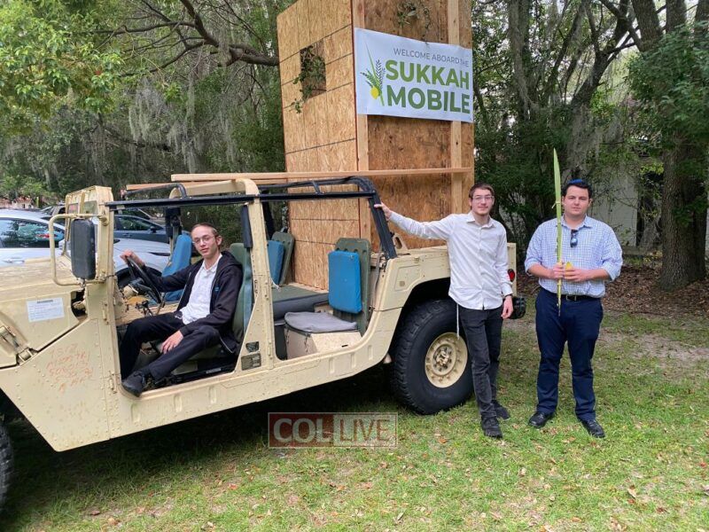 Bochurim Yoni Gewirtz, Yakov Gurevitch, Mendy Dahan and Benjamin Rosen are travelling around Jacksonville, Florida in their Sukkah Mobile, offering hundreds of fellow Jews the opportunity to shake the lulav and esrog. More