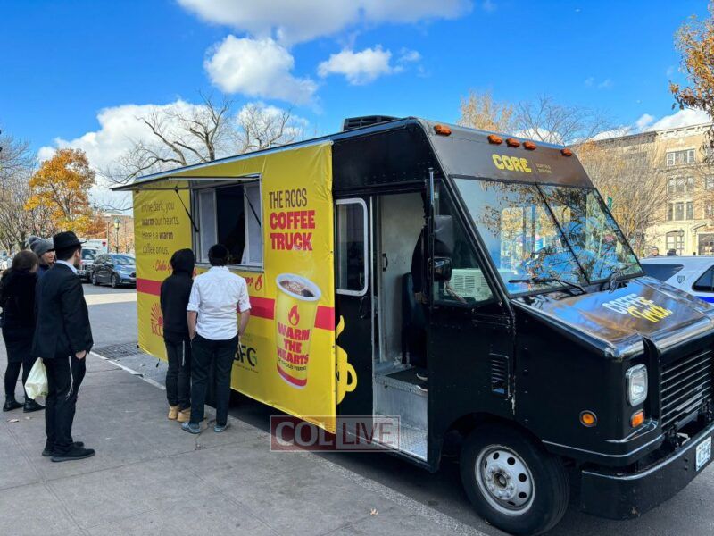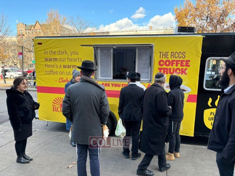 RCCS was offering free coffee from a coffee truck in front of 770 Eastern Parkway on Tuesday morning, reminding to buy raffle tickets for their annual fundraiser. More