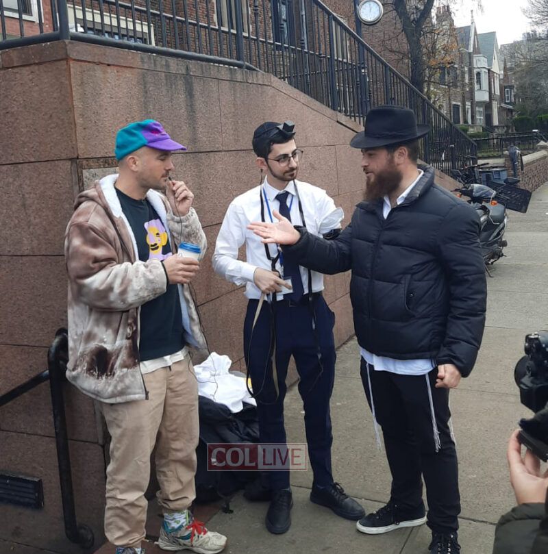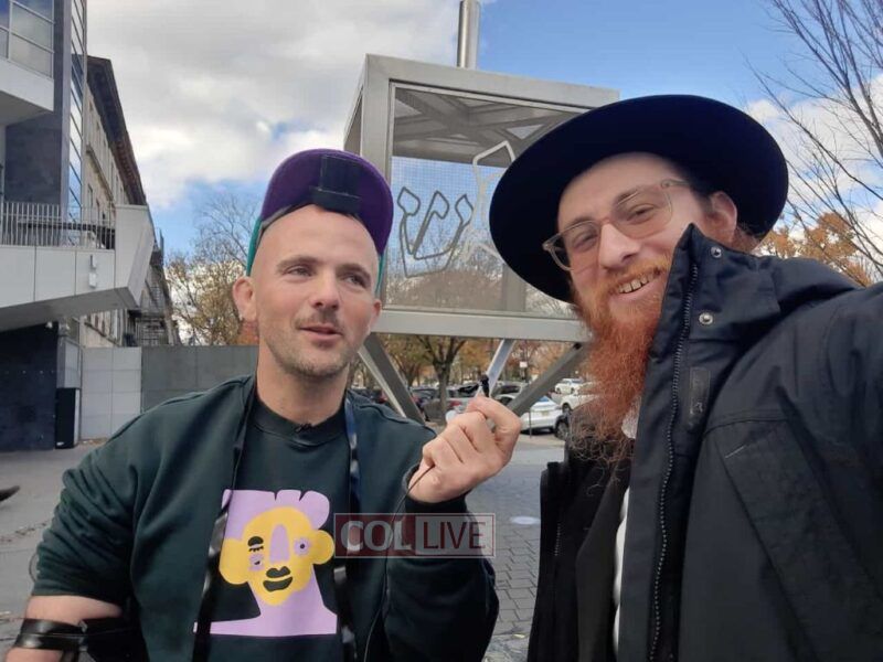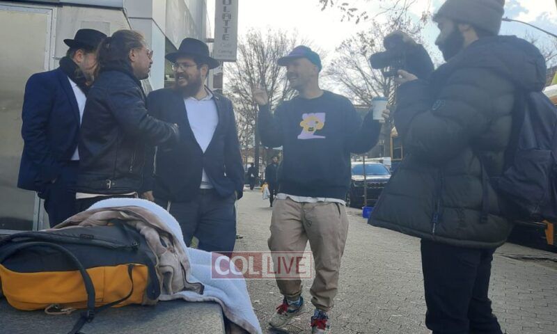 Chabad bochur Sruly Lebovic met Jewish rapper Kosha Dillz doing street interviews outside of 770 this week and helped him don Tefillin and sign up for a letter in the Unity Sefer Torah. More