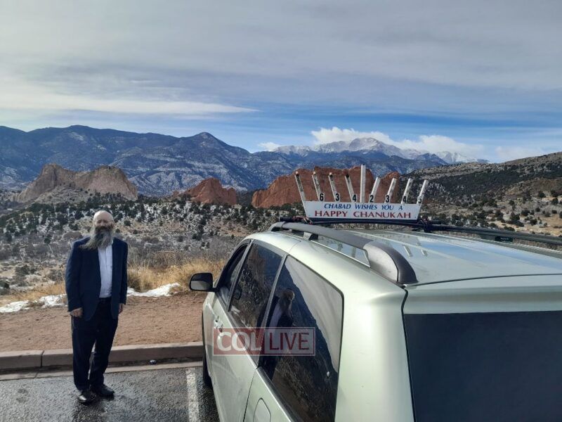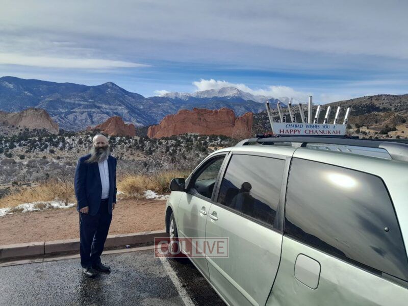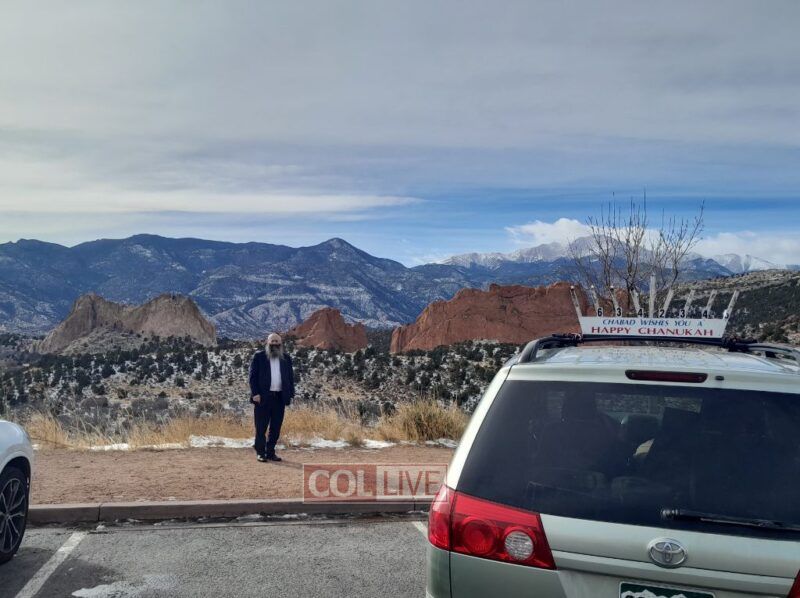 Rabbi Moshe Liberow, Shliach in Colorado Springs, Colorado, publicized Chanukah at the famous landmark Garden of the G-d's Park in Colorado. More