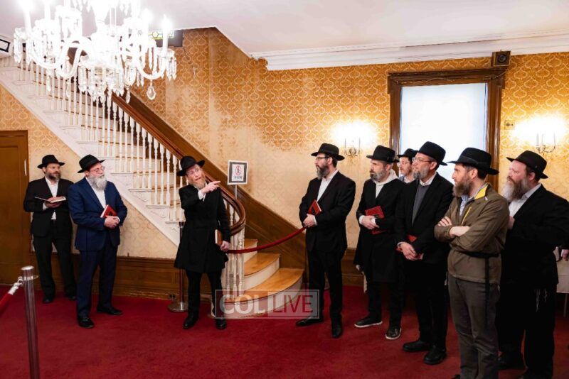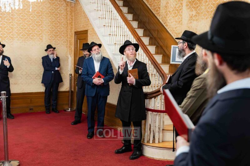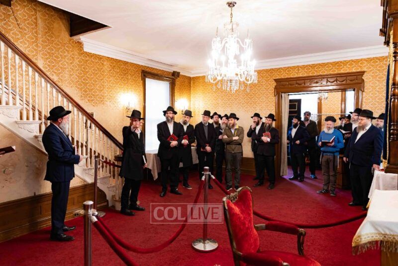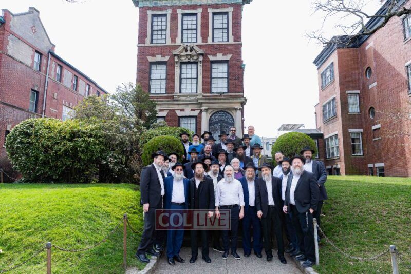 A group of Oholei Torah alumni, who are gathering for a Shabbos achdus to mark their 50th birthday year, met at the Rebbe's home on President Street in Crown Heights before traveling to the Chabad Discovery Center in Clarks Summit, PA. Photos