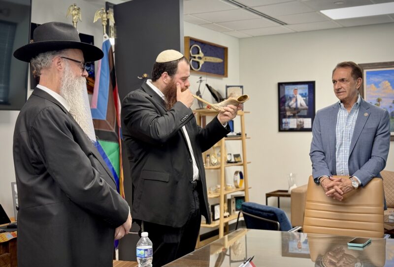 Mayor of Fort Lauderdale Dean Trantalis hosted Shluchim Rabbi Moishe Meir Lipszyc and Rabbi Mendel Fayershteyn for a meeting before Rosh Hashana. He heard the sound of the shofar and received an update about Florida's growing Jewish community. Photos