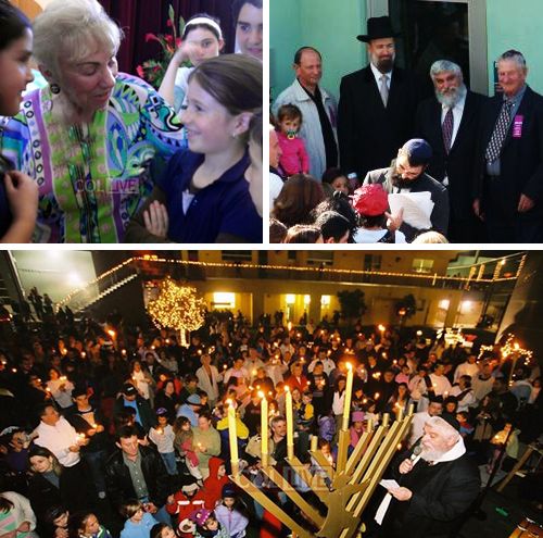 Mazkir Rabbi Leibel Groner, Aguch Chairman Rabbi Avraham Shemtov and Badatz member Rabbi Yaacov Schwei comfort philanthropist R' Mayer Gutnick on the passing of his mother this week. More