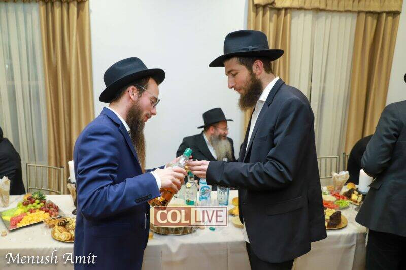 Final photo: Moshe Hersh Deutsch, killed in the attack on the kosher grocery in Jersey City, helped chosson Shmelke Diamond put on Tefillin last week. More