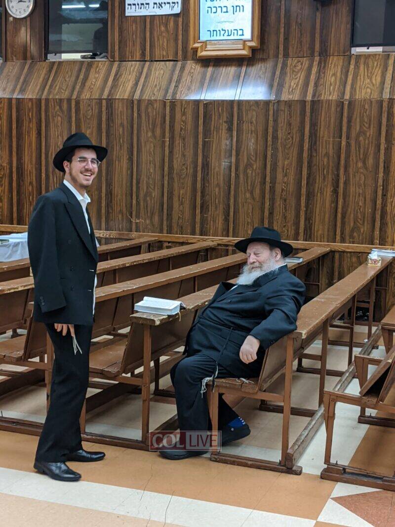 Rabbi Zalman Chanin, the Director of Vaad L'Hafotzas Sichos, smiles as he got to daven in the limited minyan being held these days in the main shul of 770 Eastern Parkway in Crown Heights, Wednesday. Photo