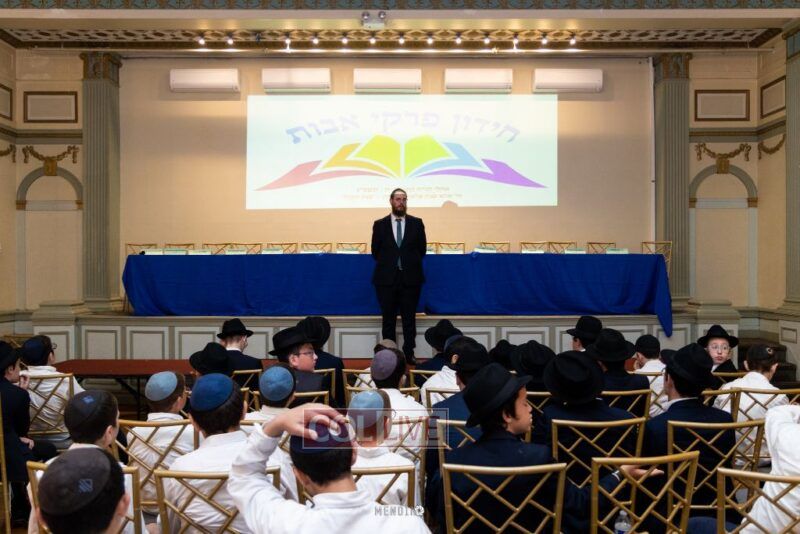 Oholei Torah School holds a school-wide Pirkei Avos project. Every week the boys are challenged to learn that week’s Pirkei Avos with and without meforshim, and 60 Ma’amorei Chazal from Pirkei Avos which the talmidim learn by heart. They then take a weekly test on the material.