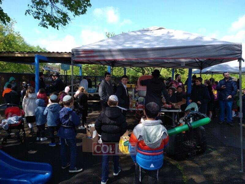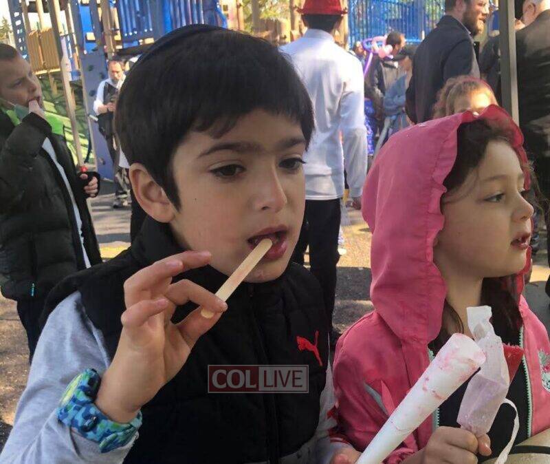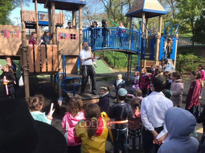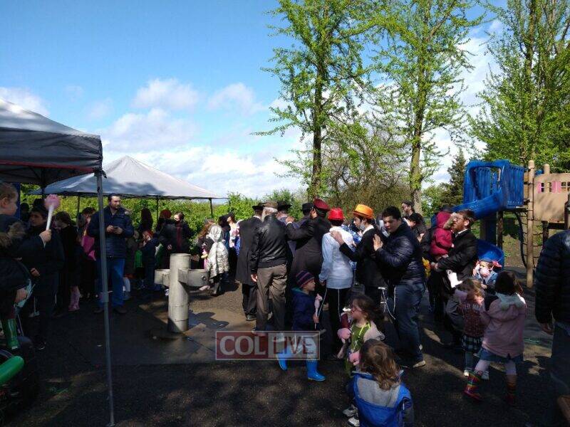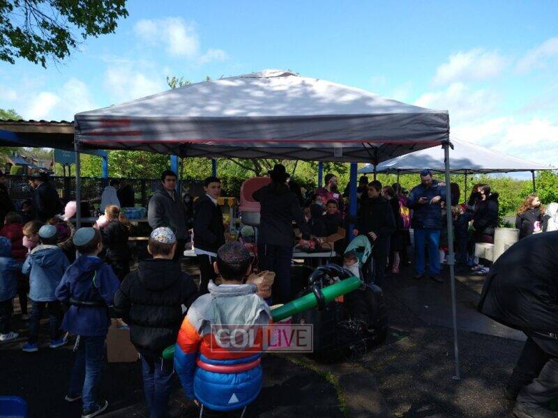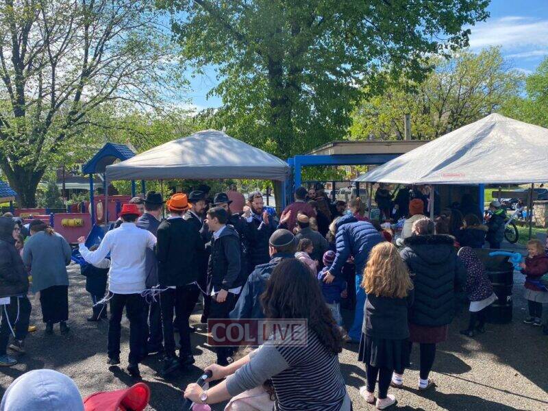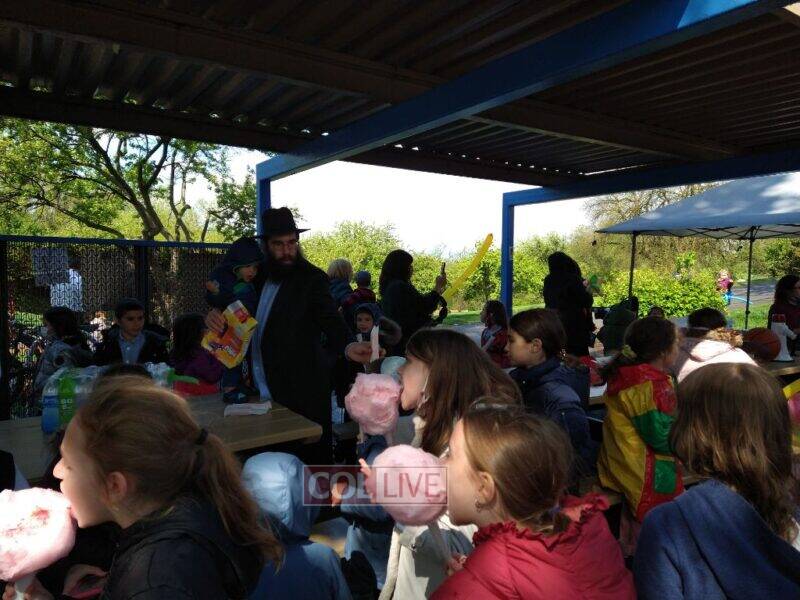 The men danced joyously to live music and the children had a lively Tzivos Hashem rally, led by R’ Mendel “Der Baal Menagen” Markel and Rabbi Chaim Itkin. The children recited psukim, the Rebbe’s Kapitel and a special Kapitel for Meron and they heard all about Rabbi Shimon Bar Yochai, Rabbi Akiva and the importance of Ahavas Yisroel.