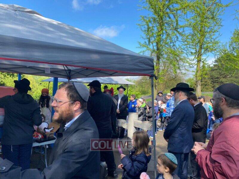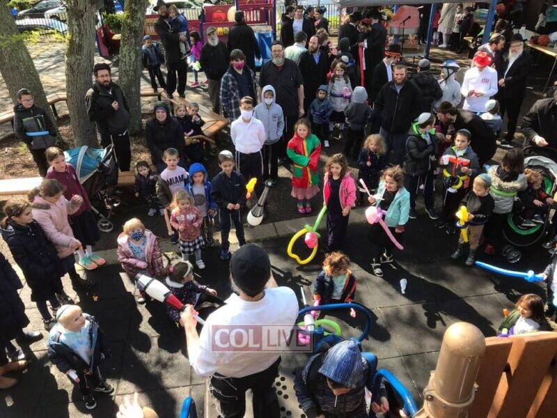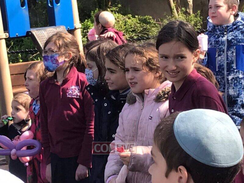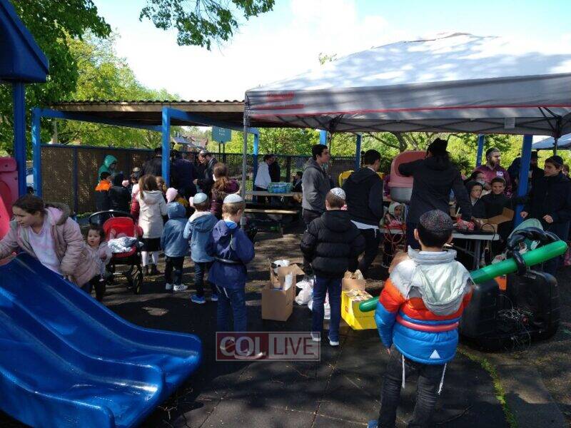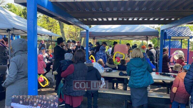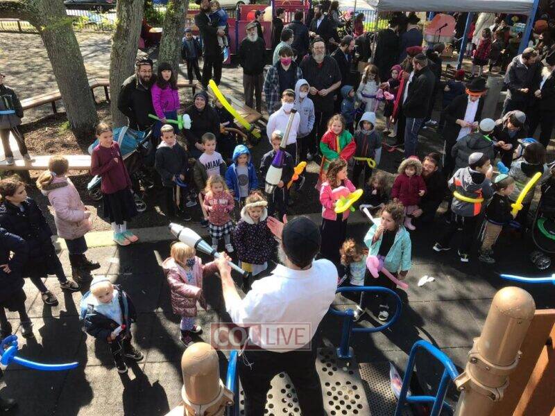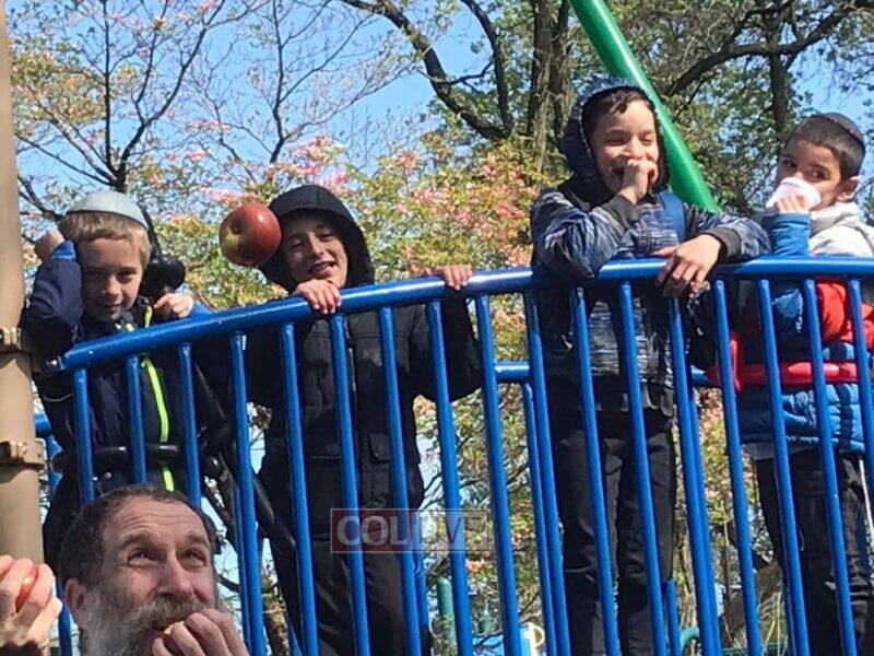 The men danced joyously to live music and the children had a lively Tzivos Hashem rally, led by R’ Mendel “Der Baal Menagen” Markel and Rabbi Chaim Itkin. The children recited psukim, the Rebbe’s Kapitel and a special Kapitel for Meron and they heard all about Rabbi Shimon Bar Yochai, Rabbi Akiva and the importance of Ahavas Yisroel.
