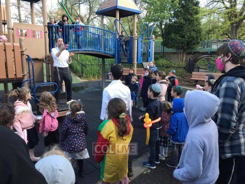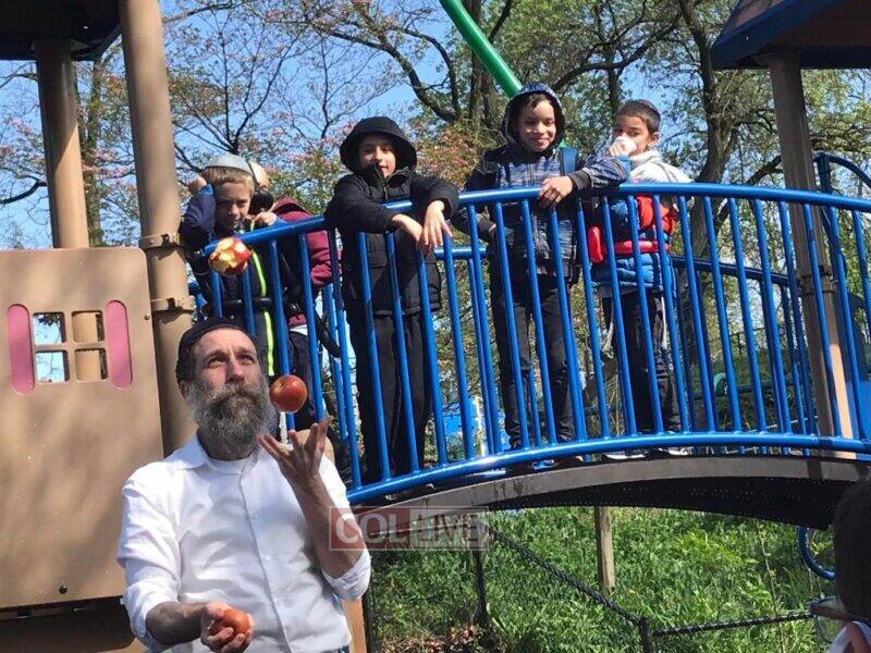 Rabbi Rosenfeld gave over memories and reflections from Lag Baomer by The Rebbe. The children were treated to popcorn, cotton candy, popsicles, nosh, a grand raffle and a special juggling show by Rabbi Aharon Herman. The organizers were assisted by the Temimim of Yeshiva Schools of Pittsburgh, who set the event up in the pouring rain and worked tirelessly throughout the event to add chayus and keep everything running.
