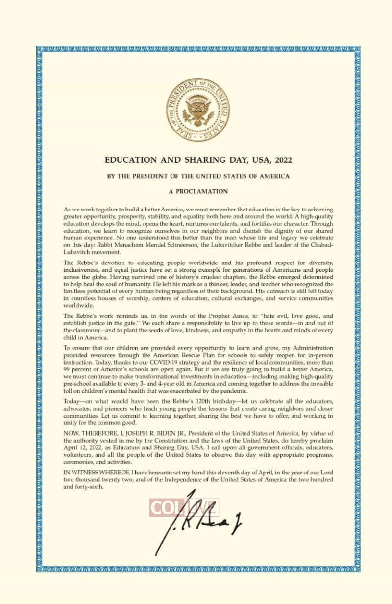 A Proclamation on Education and Sharing Day, USA, 2022