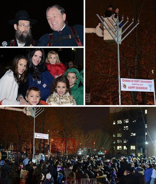 In attendance are Head Shliach to Connecticut Rabbi Yisrael Deren and Shliach Rabbi Sholom Deitsch, director of Chabad-Lubavitch of Ridgefield, located near Newtown.