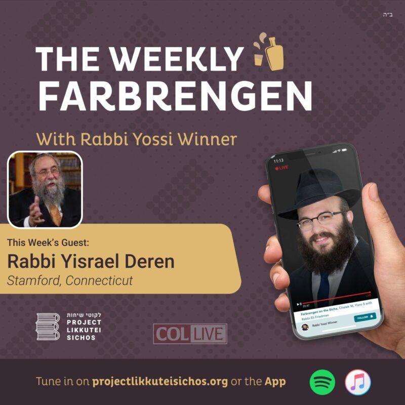 Watch: The Weekly Farbrengen from Project Likkutei Sichos, featuring a new guest each week, takes a casual dive into one of the weekly Sichos. This week: Rabbi Yisroel Deren and Rabbi Yossi Winner. Video