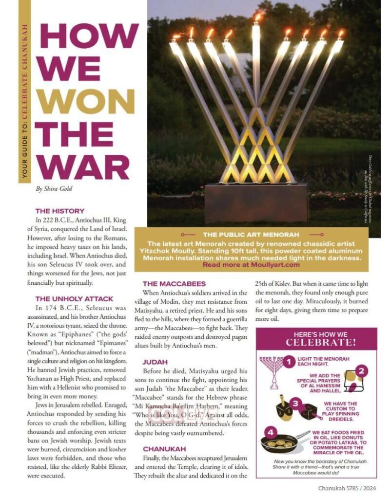 Most importantly, the magazine encourages readers to take action, spread the light of Chanukah, and attend local Chanukah events.