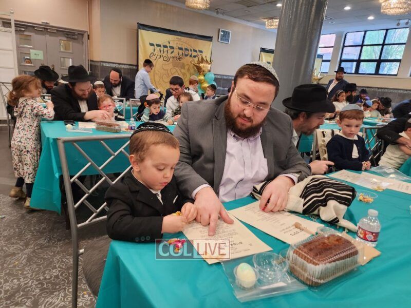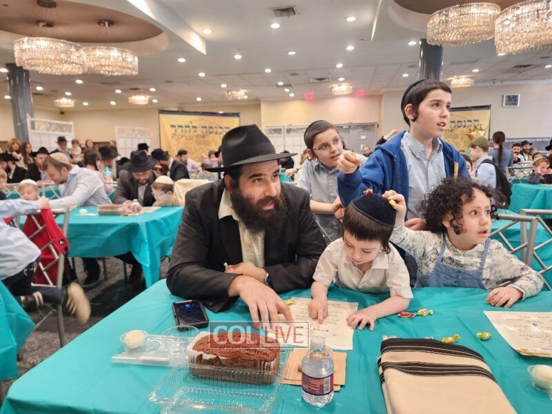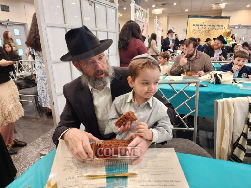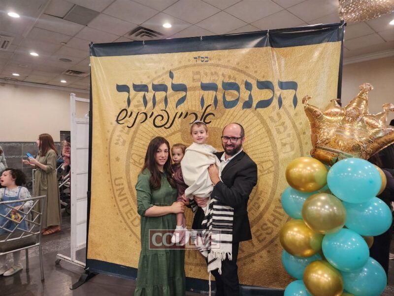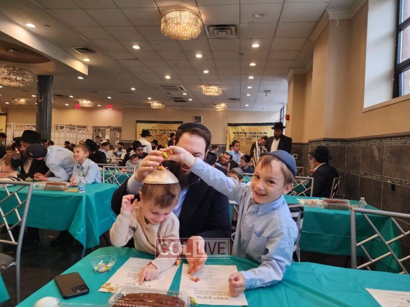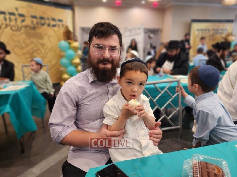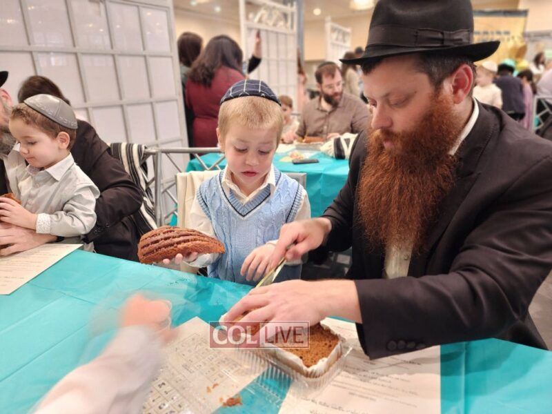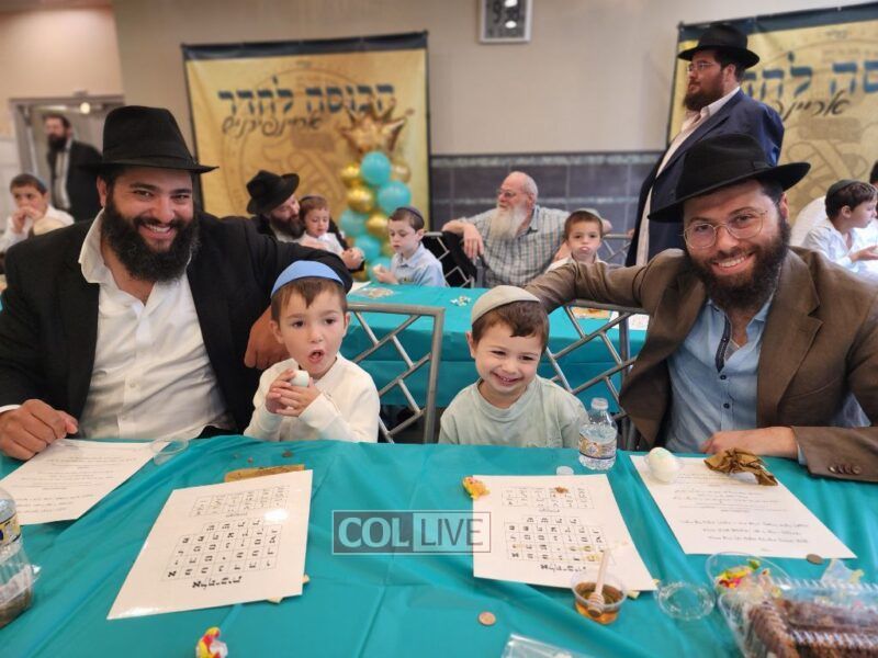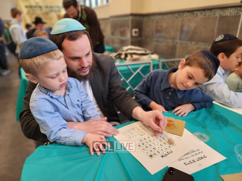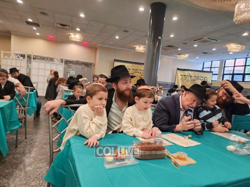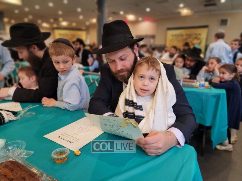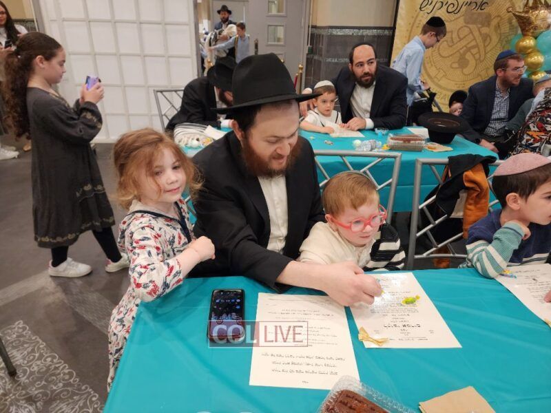 Each child was presented with his own inscribed honey cake, an egg with special pesukim, and the Sha’ar Blatt of Tanya with honey. An interactive slideshow helped the children find each letter of the Aleph Beis in their page of Tanya. The boys licked the honey from the letters, introducing them to the sweetness of Torah. Malach Michoel threw candies, and then each boy got to eat his delicious honey cake and egg.