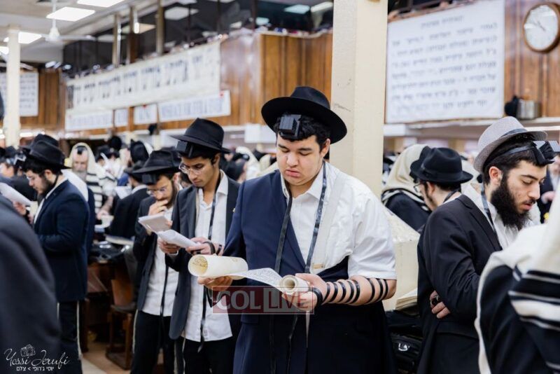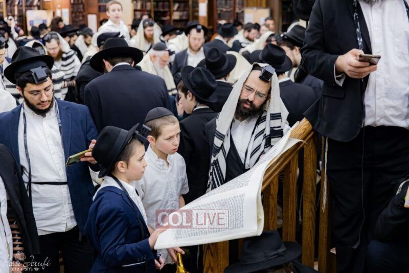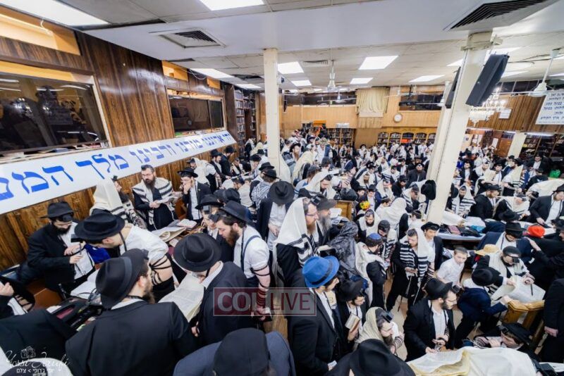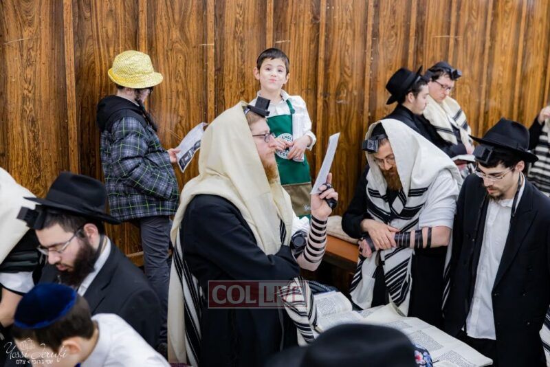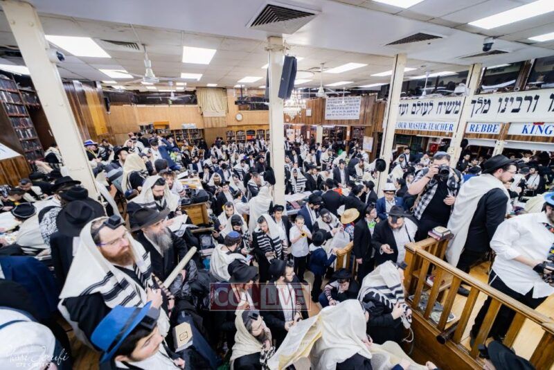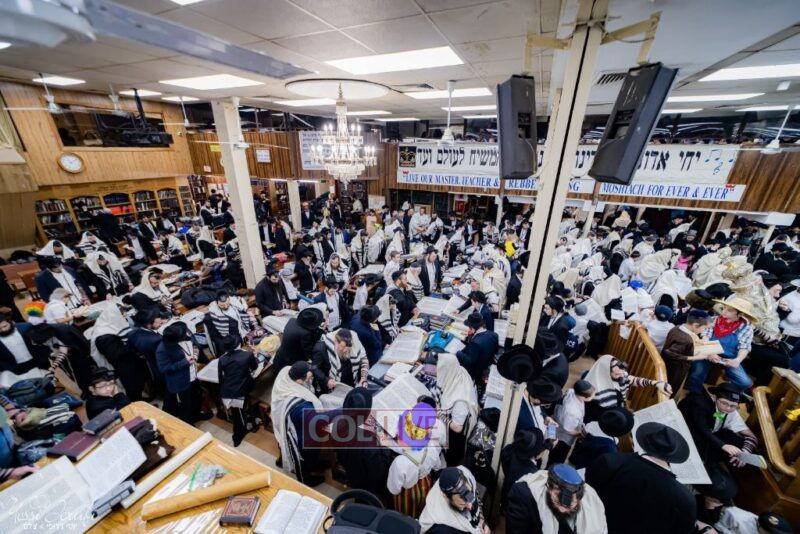 Crowds filled the main Shul of 770 on Tuesday, Purim morning, for Shacharis and Megillah. Photos