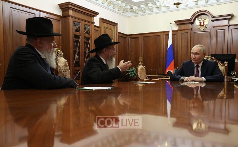 More than once, the Russian President has shared stories of the Jewish neighbor he had in his childhood, whom he would see praying and studying, and who would even treat him to Jewish foods like ‘Gefilte Fish’. Now, in the meeting which later continued without the media, the Chief Rabbi brought this up, noting that as he recently discovered that family were Chassidic Jews from Leningrad. They maintained their observance with complete mesiras nefesh (self-sacrifice), down to the finest detail. One can see the wondrous hashgacha pratis (Divine Providence) that arranged for the future President of Russia to grow up alongside a Chassidic family whose conduct left a lasting impression on his life.